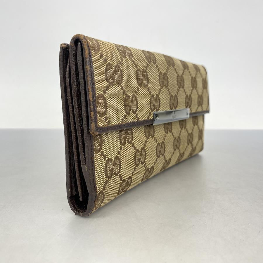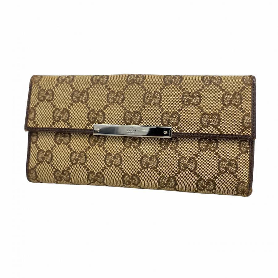 ★SALE【5ic3895-h】グッチ 長財布 GGキャンバス 112715 キャンバス ブラウン シルバー金具【中古】メンズ レディース ユニセックス