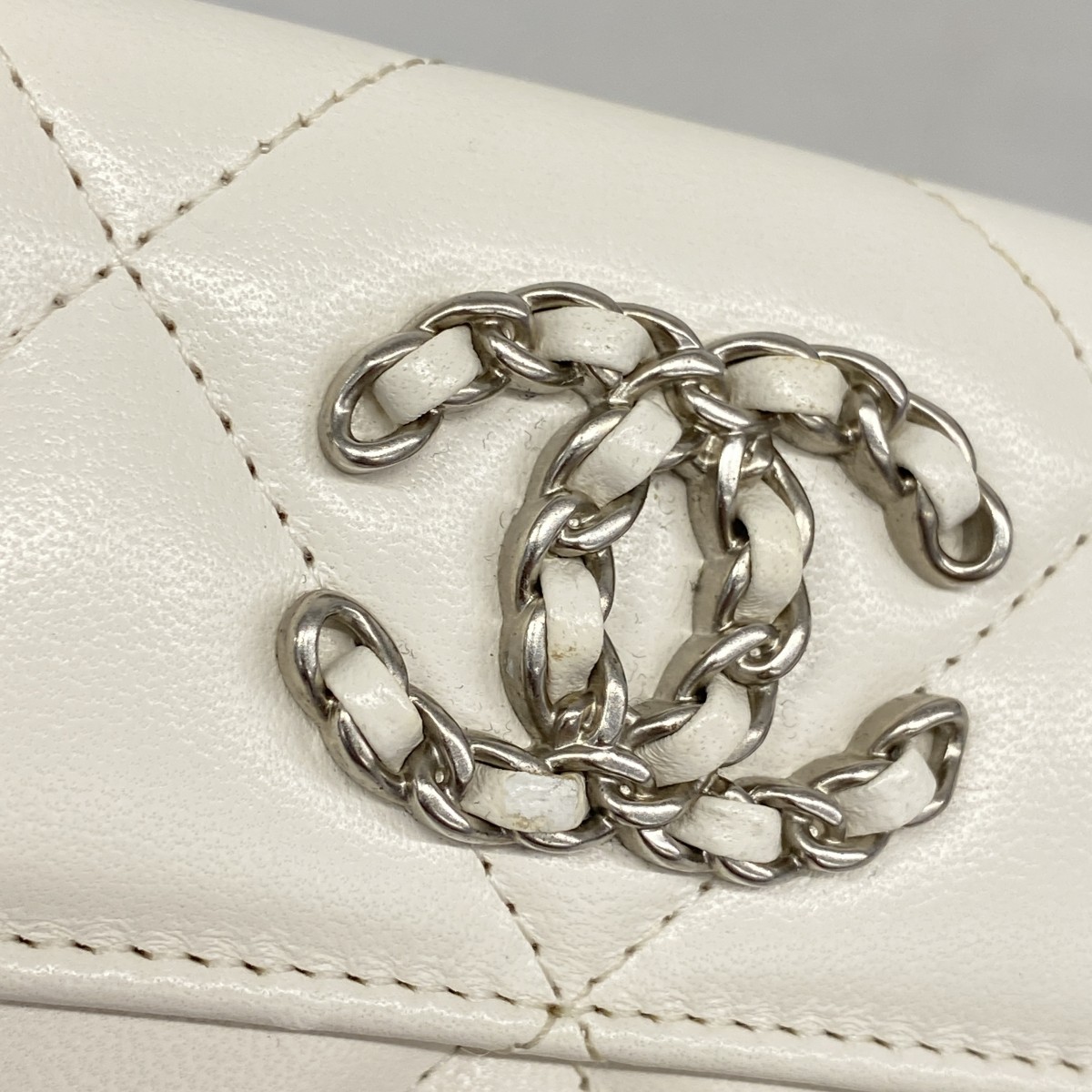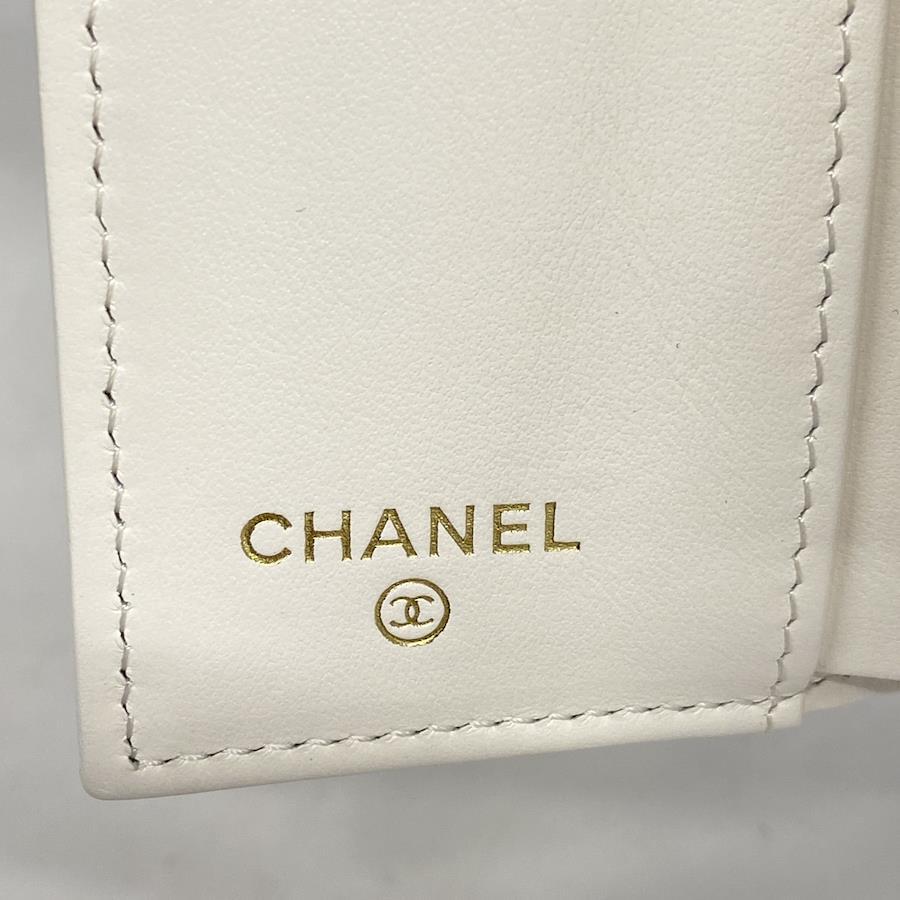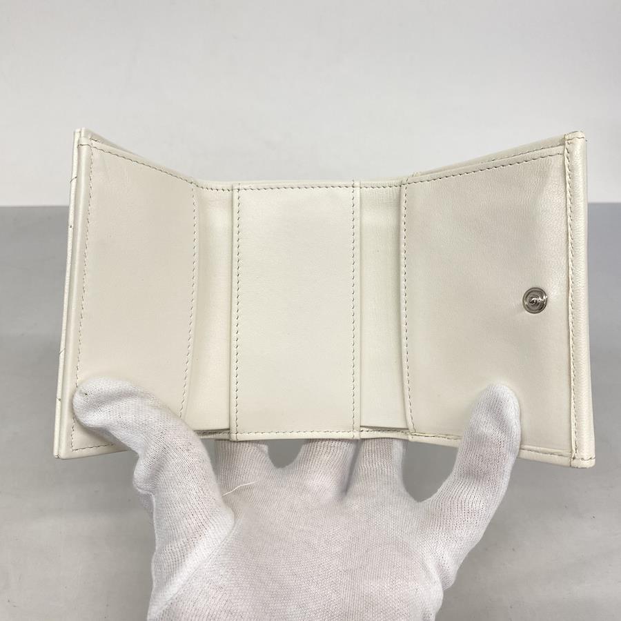 【5ic3961-h】シャネル 三つ折り財布 マトラッセ ラムスキン ホワイト シルバー金具【中古】レディース