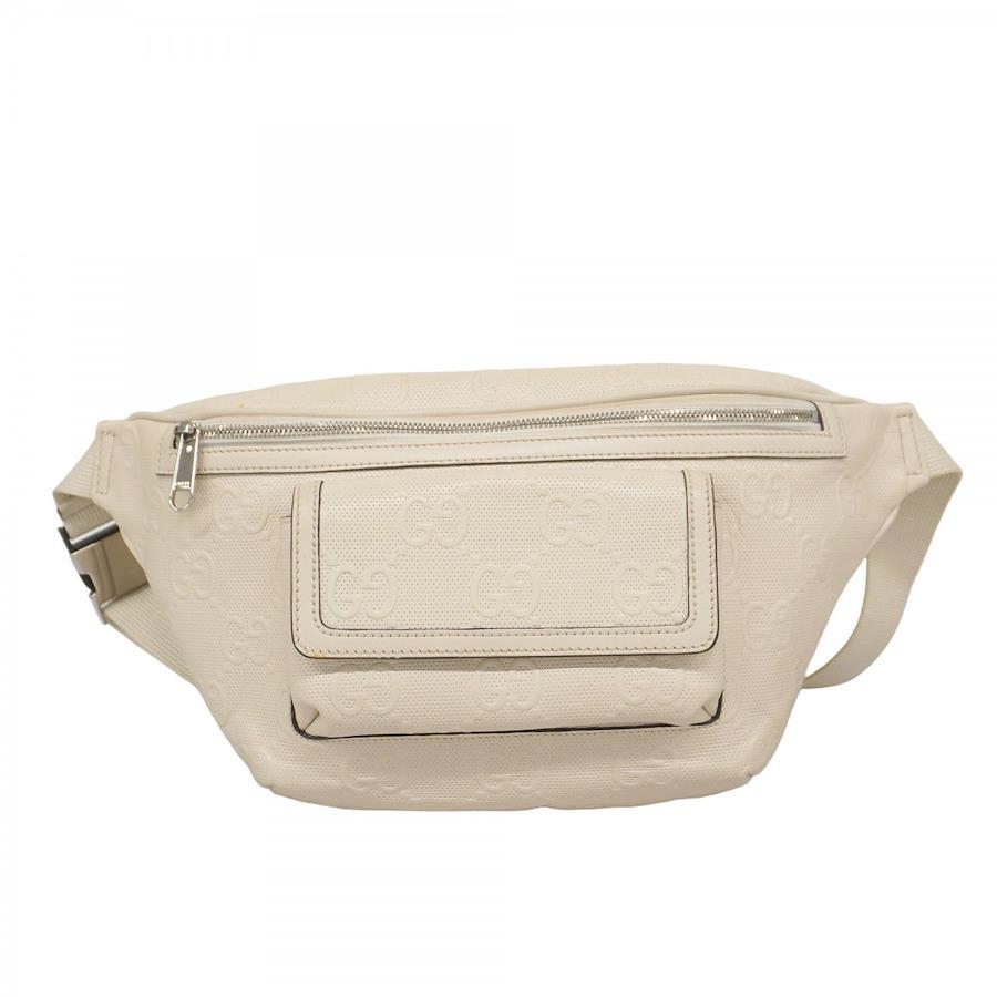 【5id4342-h】グッチ ウエストバッグ GGエンボス 645093 レザー アイボリー シルバー金具【中古】メンズ