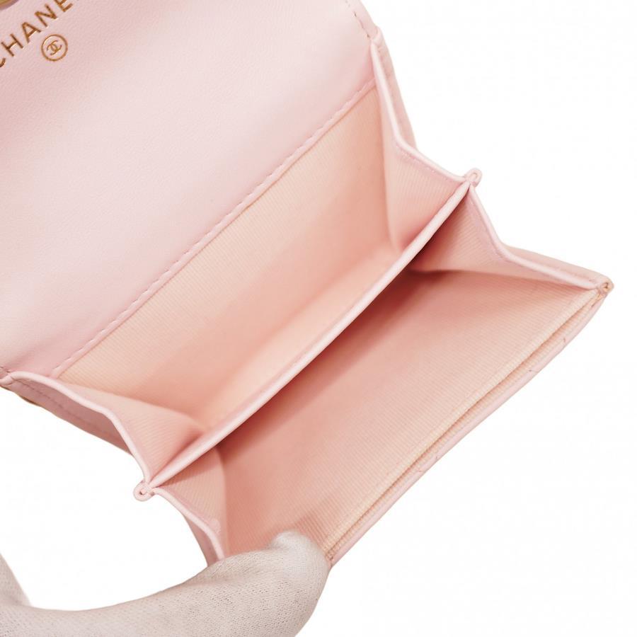 【5id4347-h】シャネル ショルダーウォレット マトラッセ ラムスキン ピンク シャンパンゴールド金具【中古】レディース