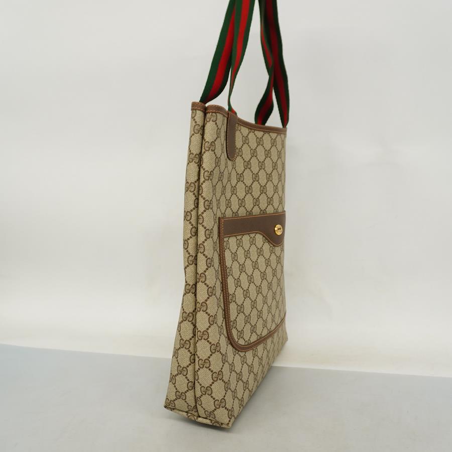 【5id4450】グッチ トートバッグ GGスプリーム/シェリーライン 89 02 003 PVC ブラウン ゴールド/シルバー金具【中古】レディース