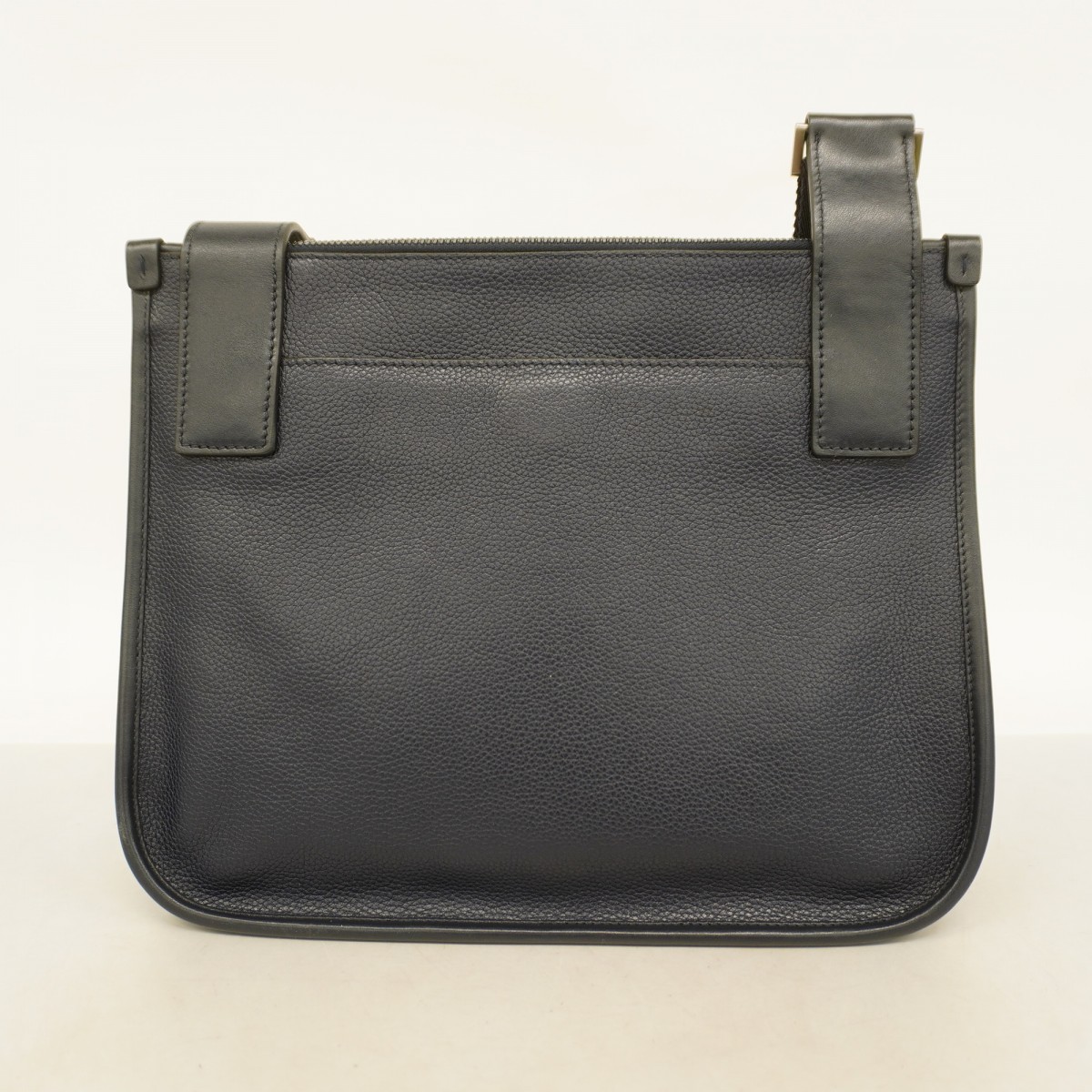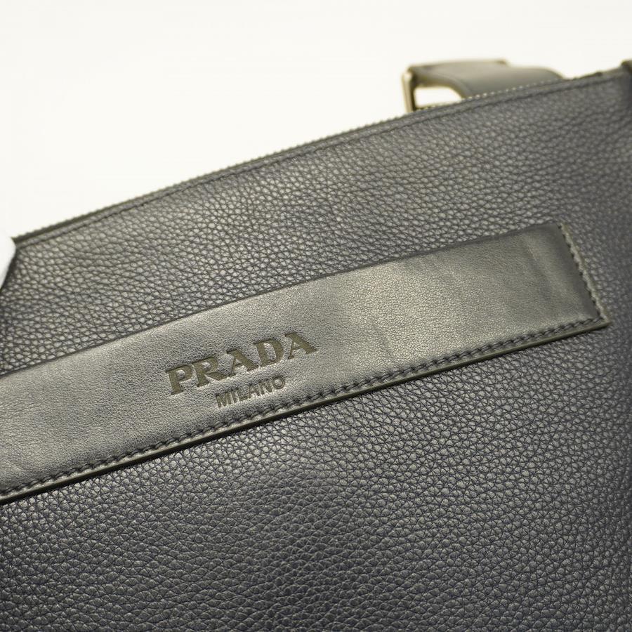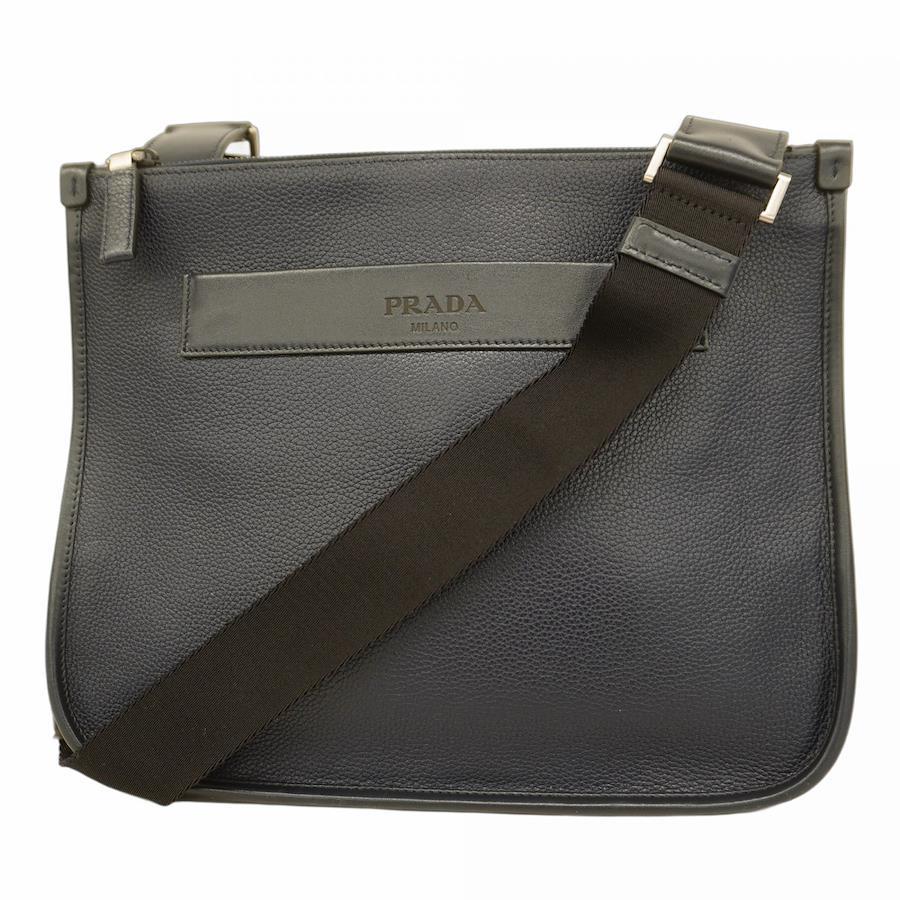 【5id4457】プラダ ショルダーバッグ レザー ネイビー ブラック シルバー金具【中古】メンズ
