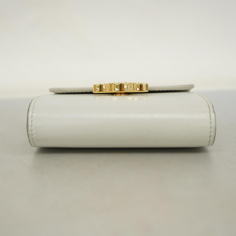 【5id4540】セリーヌ 三つ折り財布 トリオンフ レザー アイボリー ゴールド金具【中古】レディース