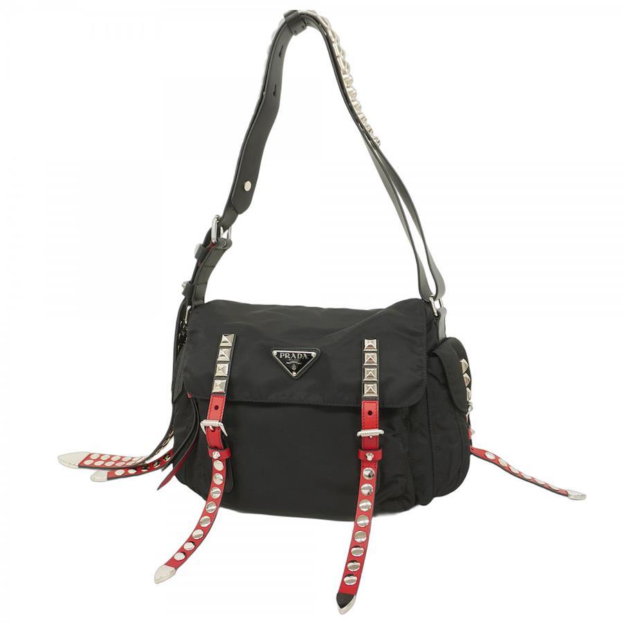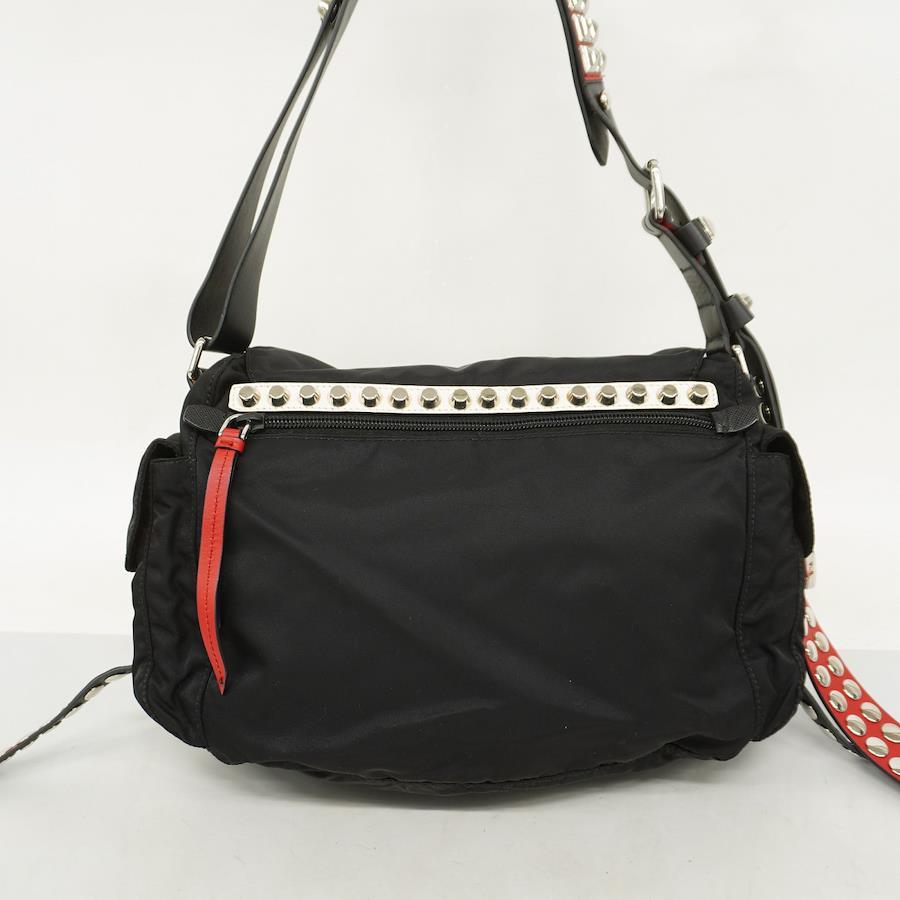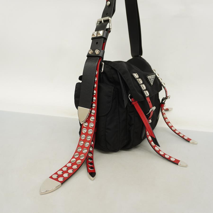 【5id4604-h】プラダ ショルダーバッグ ナイロン ブラック シルバー金具【中古】レディース