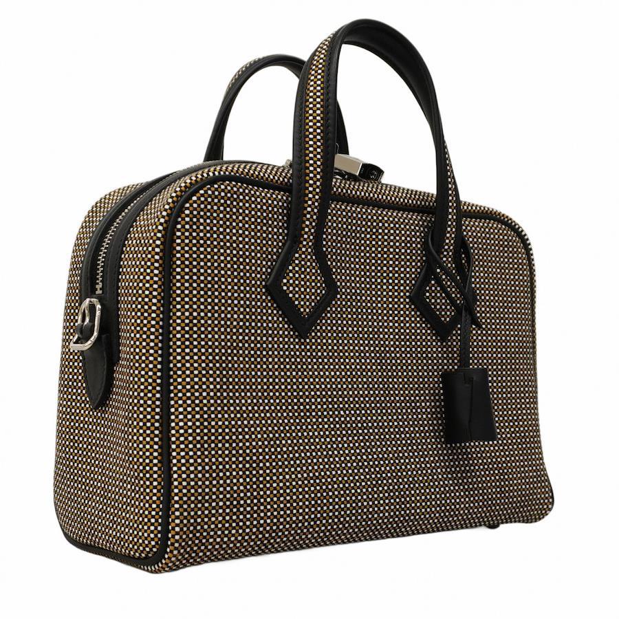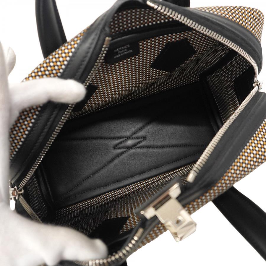 【5id4621-h】エルメス ハンドバッグ ヴィクトリア3フールトゥミニ スイフト トワルキャドリーユ ブラック シルバー金具 W刻印 2wayバッグ【中古】レディース