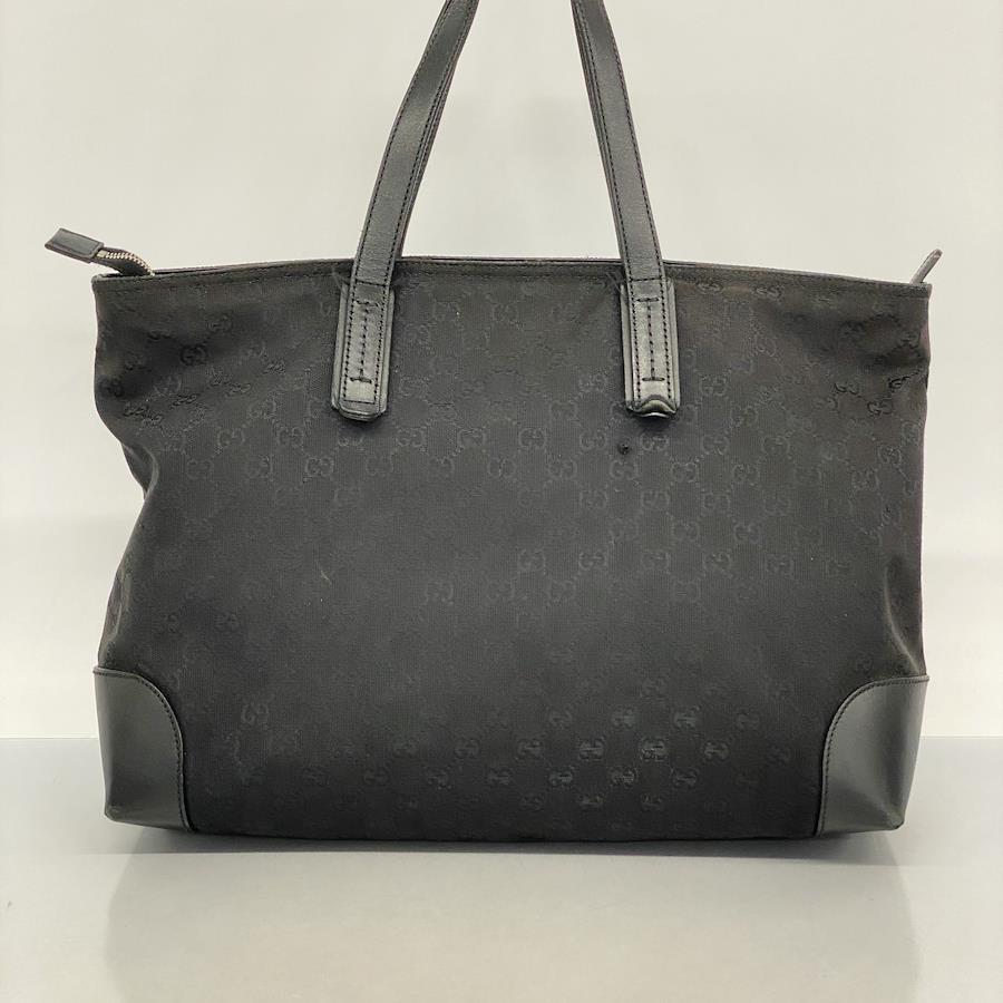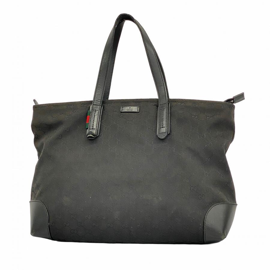 [5id4660-h] Gucci Tote Bag GG Canvas/Sherry Line 808928 Canvas Black with Silver Hardware [Pre-owned] Women's