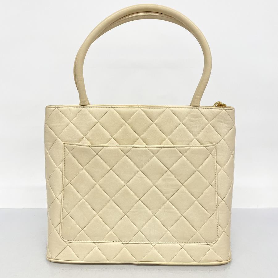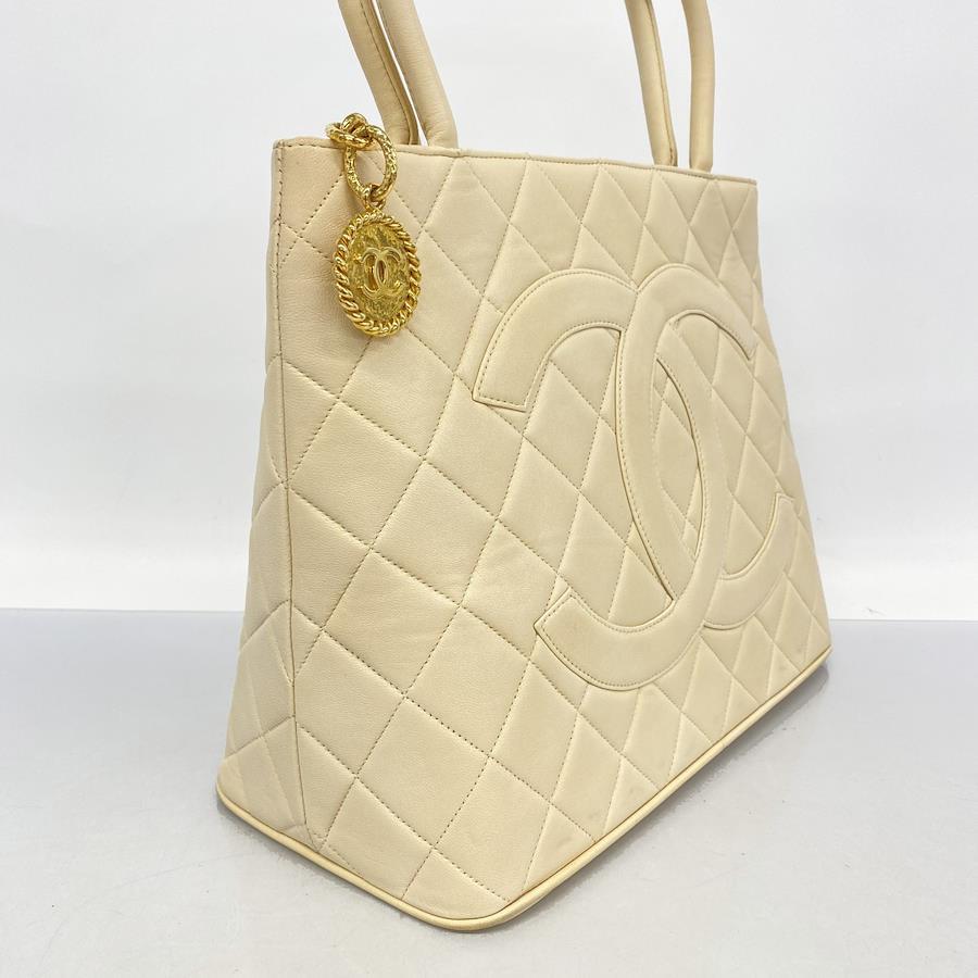 【5id4811-h】シャネル トートバッグトート ラムスキン ベージュ ゴールド金具【中古】レディース