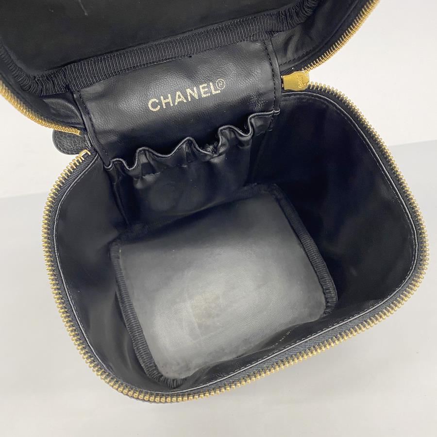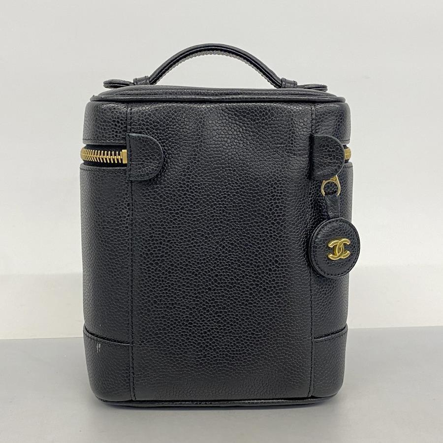 【5id4845-h】シャネル バニティバッグ キャビアスキン ブラック ゴールド金具【中古】レディース