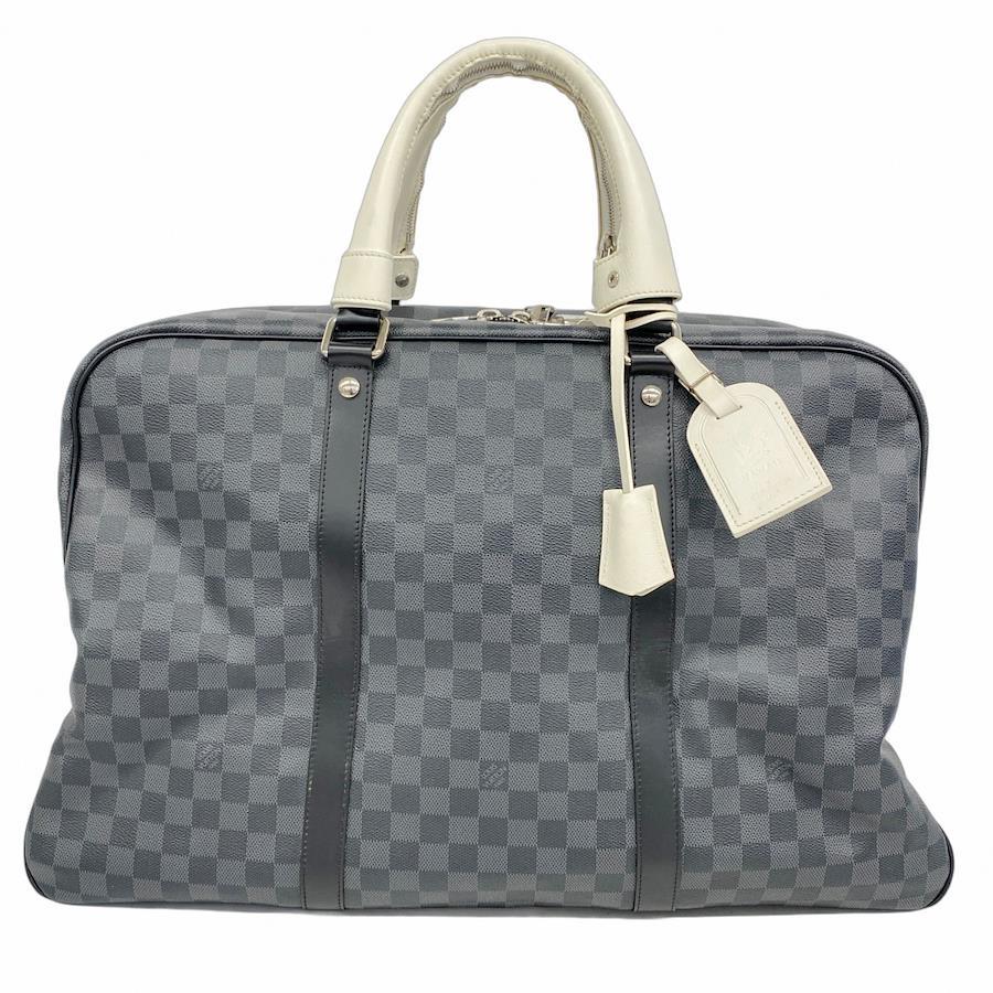 【5id4890-h】ルイヴィトン ボストンバッグ ダミエ・グラフィット サックヴォワヤージュ ホワイトハンドル N41140 ブラック【中古】メンズ