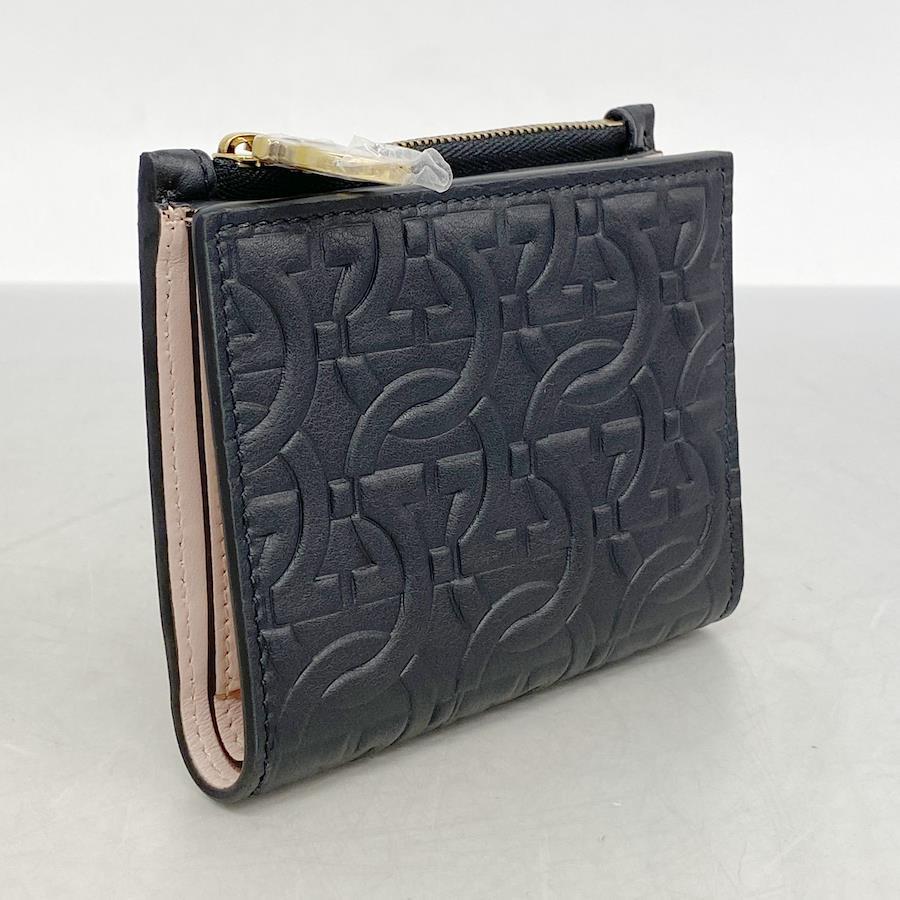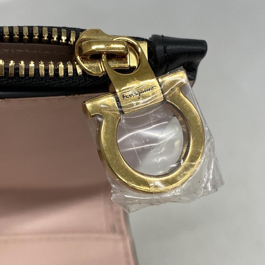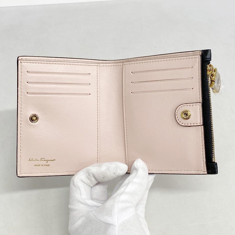 【5id4971】サルヴァトーレフェラガモ 財布 ガンチーニ レザー ブラック ピンク ゴールド金具【中古】レディース
