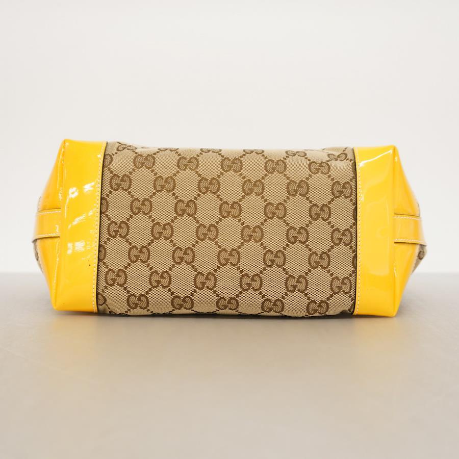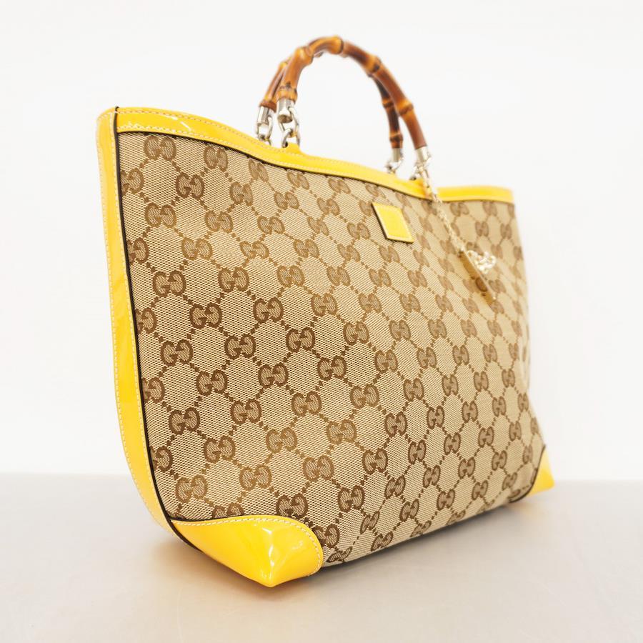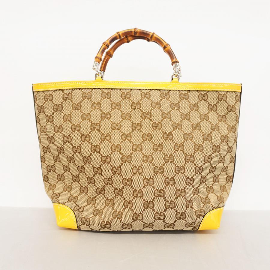 【5id4997】グッチ トートバッグ GGキャンバス/バンブー 311175 キャンバス ブラウン イエロー ゴールド金具【中古】レディース