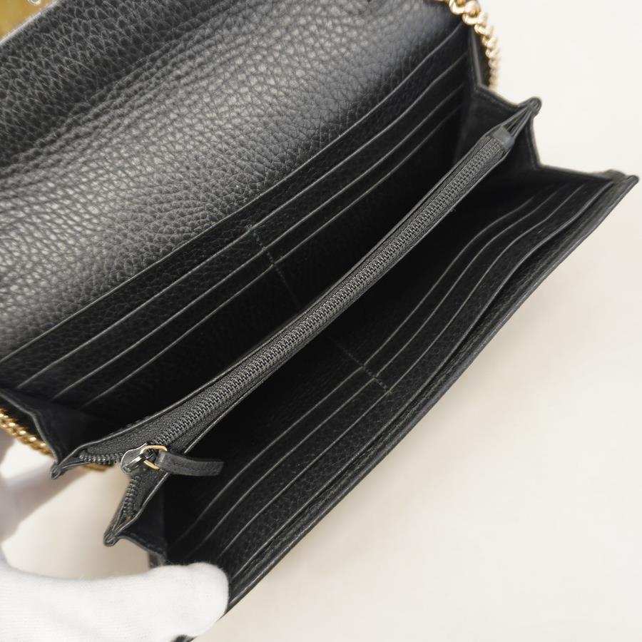 【5id4998】グッチ ショルダーウォレット GGマーモント 546585 レザー ブラック ゴールド金具【中古】レディース