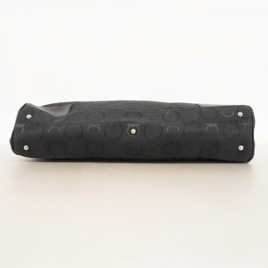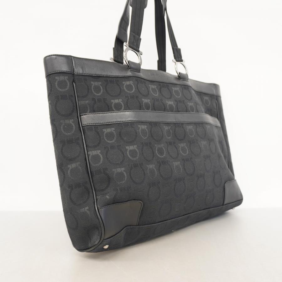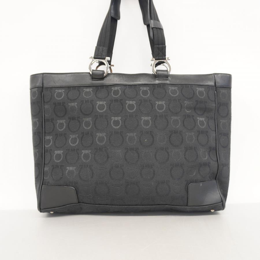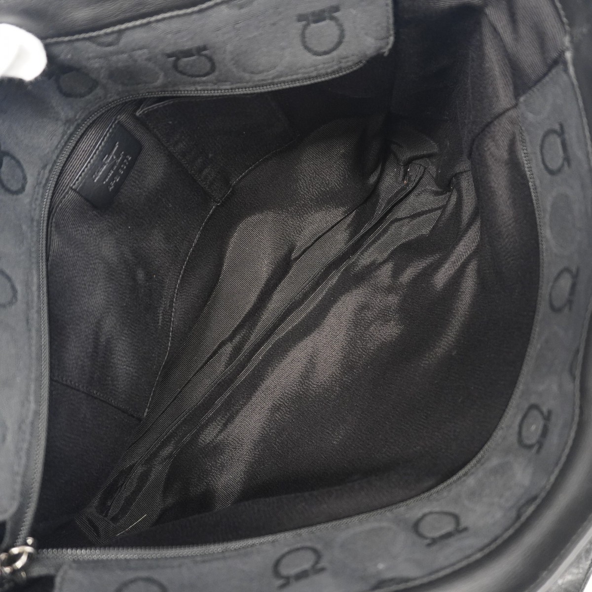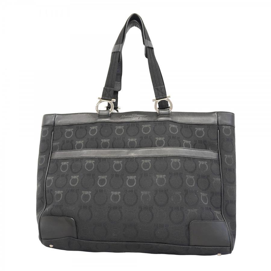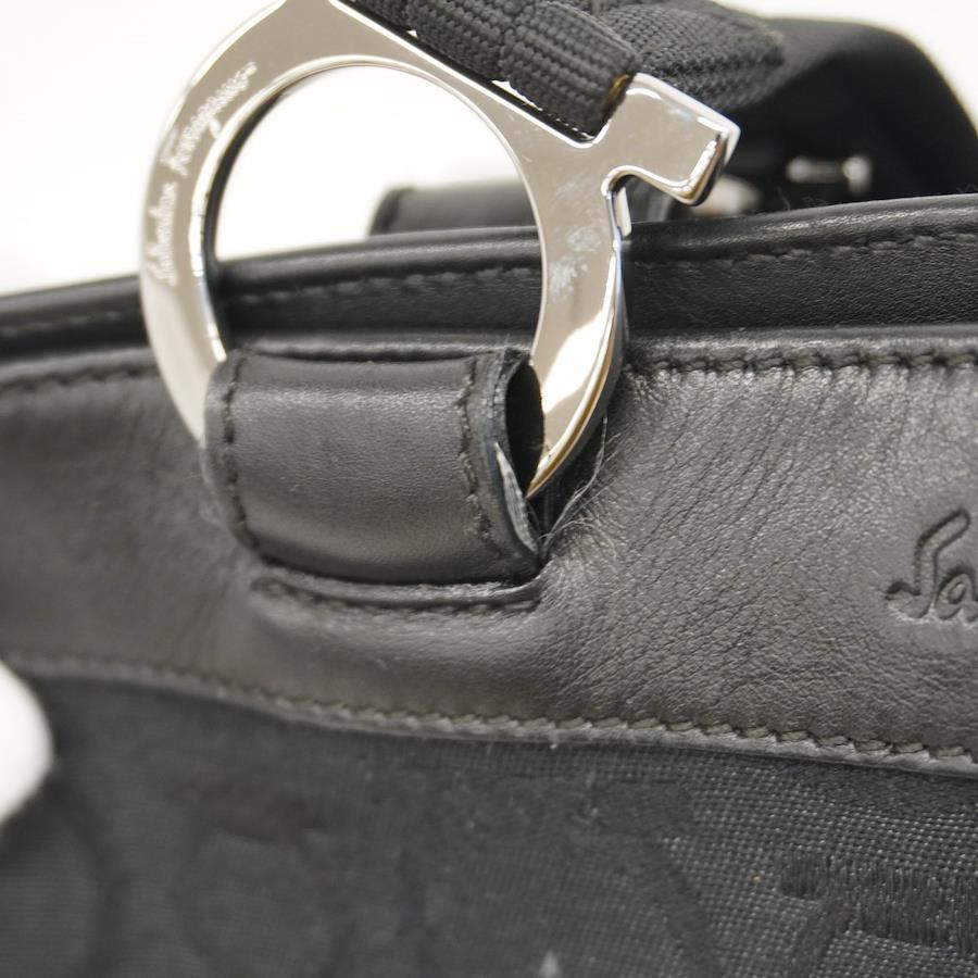【5id4999】サルヴァトーレフェラガモ トートバッグ ガンチーニ ナイロンキャンバス ブラック シルバー金具【中古】レディース