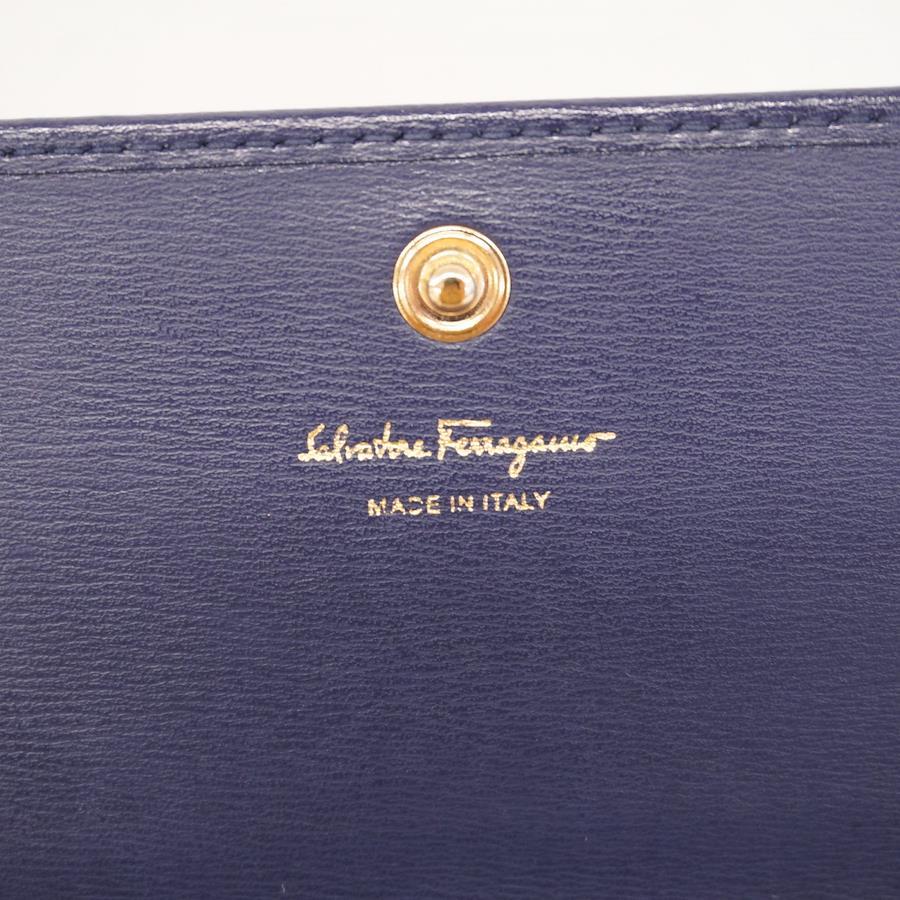 【5id5000】サルヴァトーレフェラガモ 長財布 ガンチーニ レザー ネイビー ゴールド金具【中古】レディース
