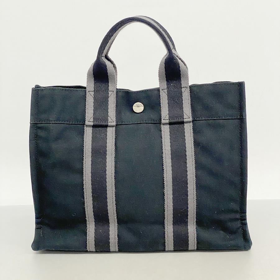 【5id5044】エルメス ハンドバッグ フールトゥPM キャンバス ブラック グレー シルバー金具【中古】レディース
