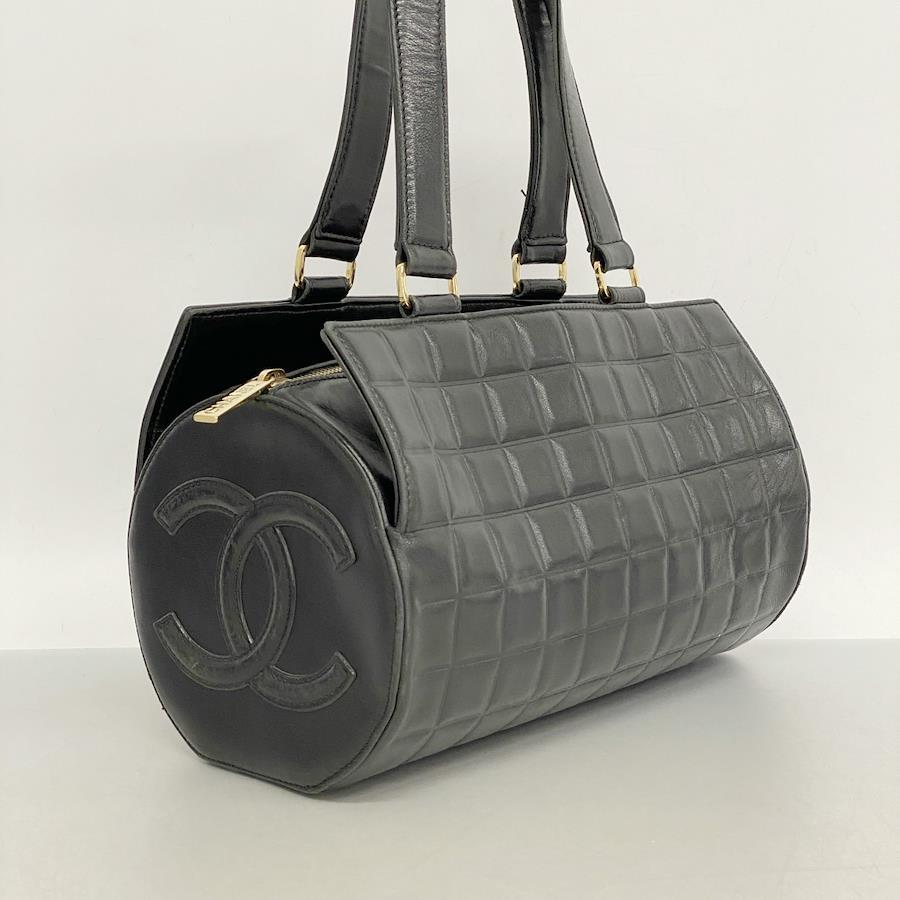 【5id5055】シャネル ハンドバッグ チョコバー ラムスキン ブラック シャンパンゴールド金具【中古】レディース