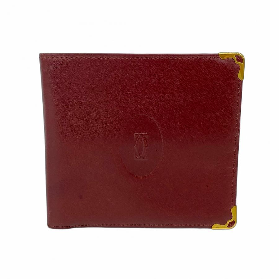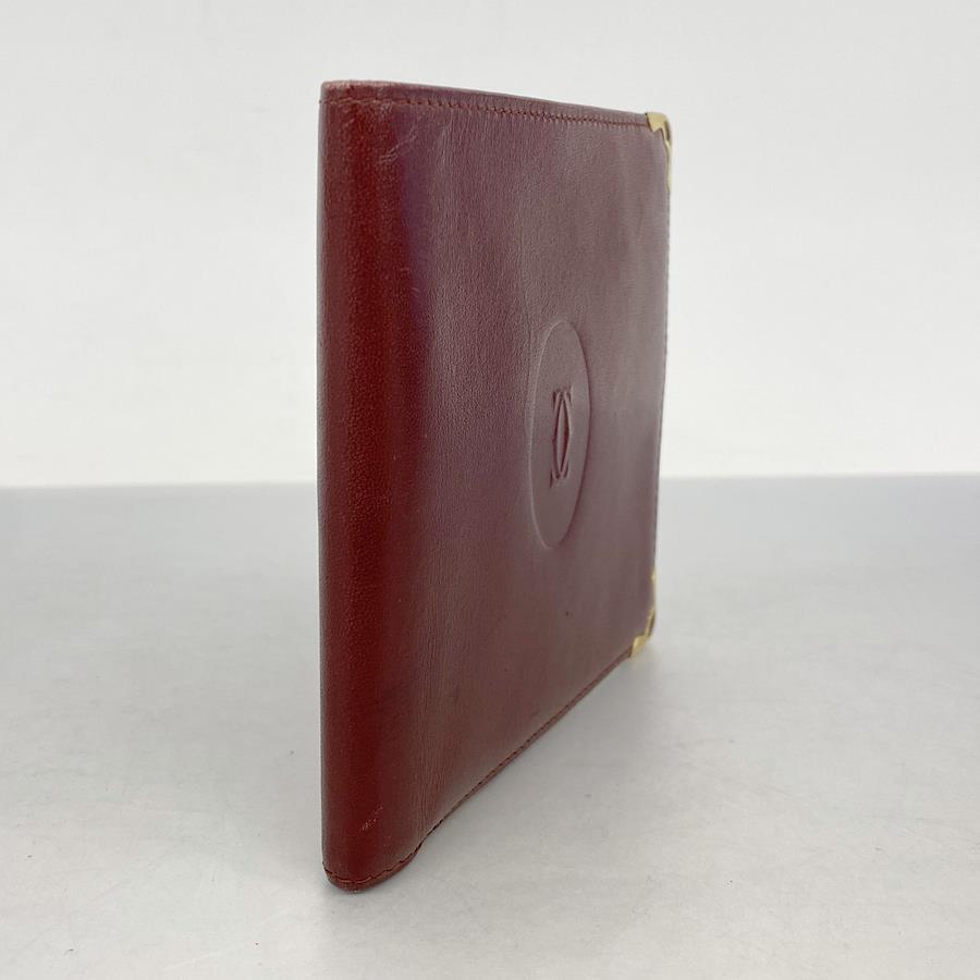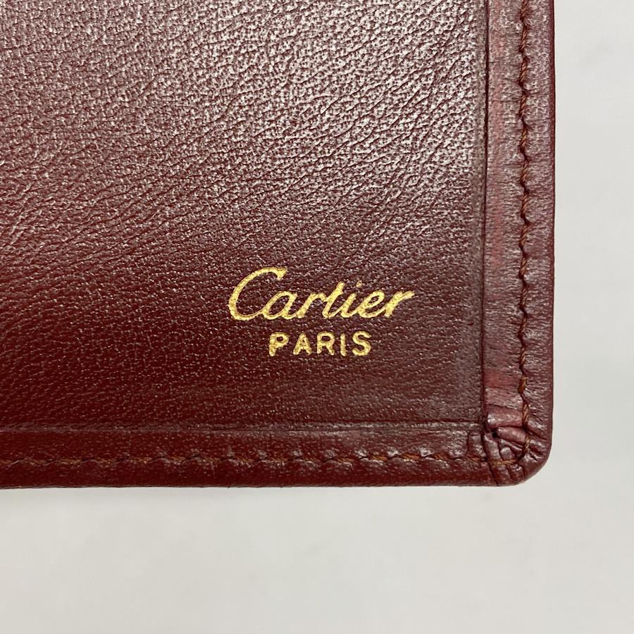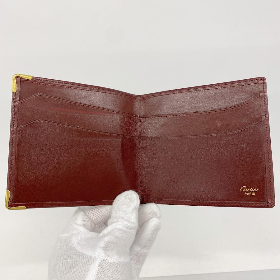 【5id5103】カルティエ 札入れ マスト レザー ボルドー ゴールド金具【中古】メンズ