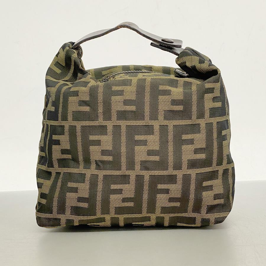 【5id5149】フェンディ ポーチ ズッカ ナイロンキャンバス ブラウン シルバー金具【中古】レディース