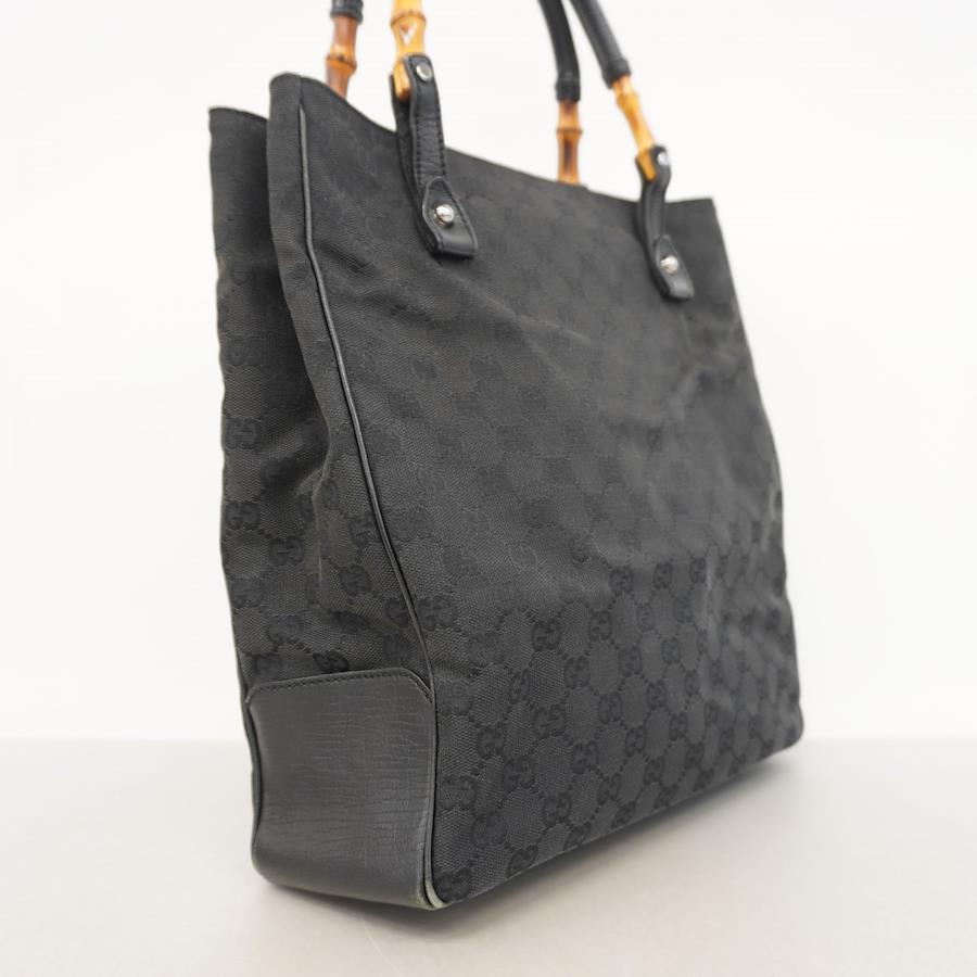 [5id5196] Gucci Tote Bag GG Canvas/Bamboo 112530 Canvas Black with Silver Hardware [Pre-owned] Women's