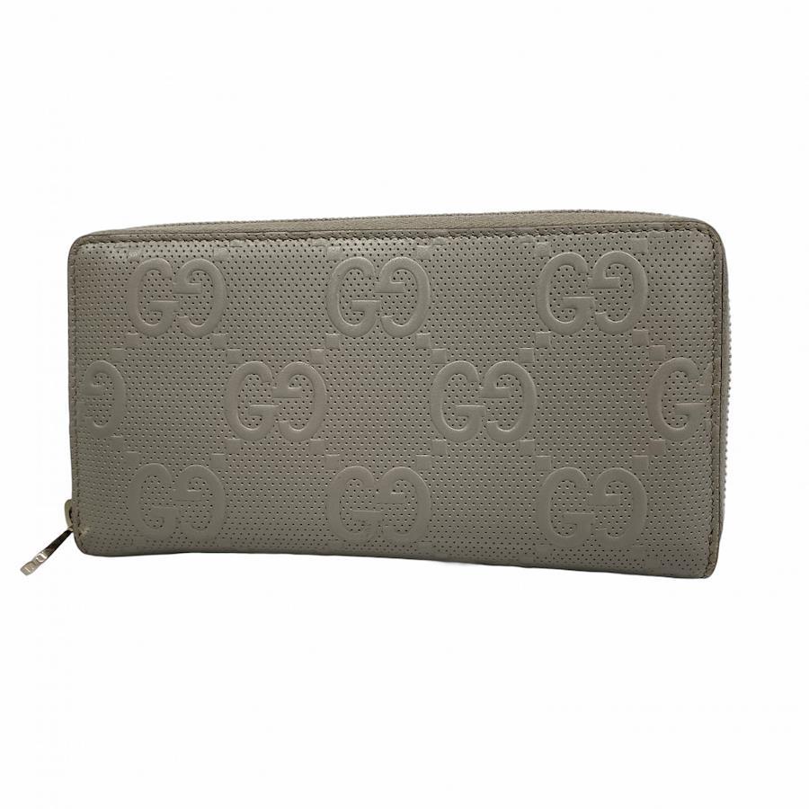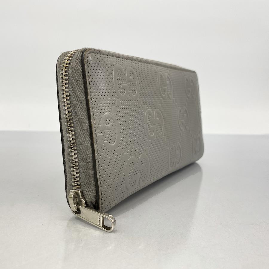 【5id5286-h】グッチ 長財布 GGエンボス 625558 レザー グレー シルバー金具【中古】メンズ
