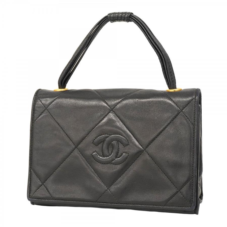 【5id5484-h】シャネル ハンドバッグ マトラッセ ラムスキン ブラック ゴールド金具【中古】レディース