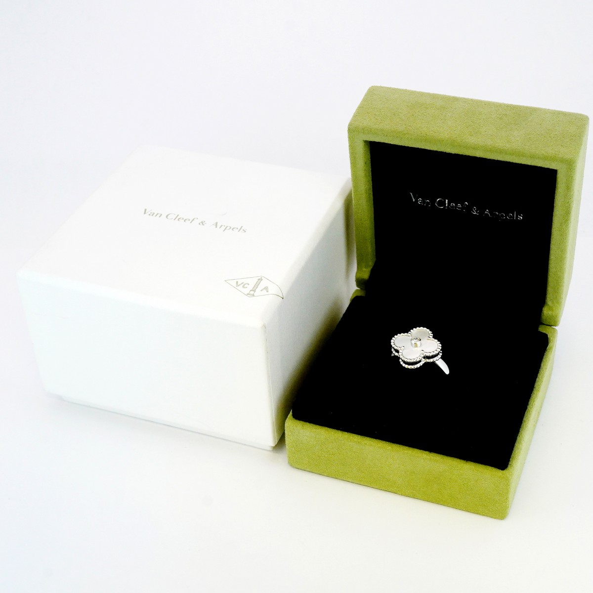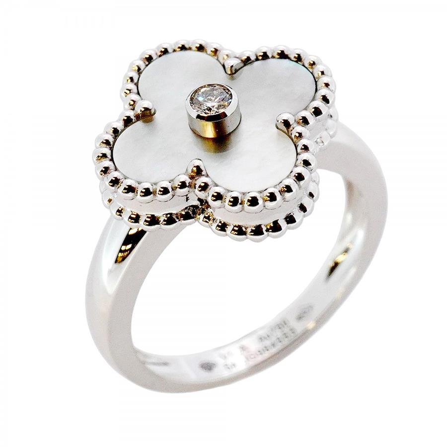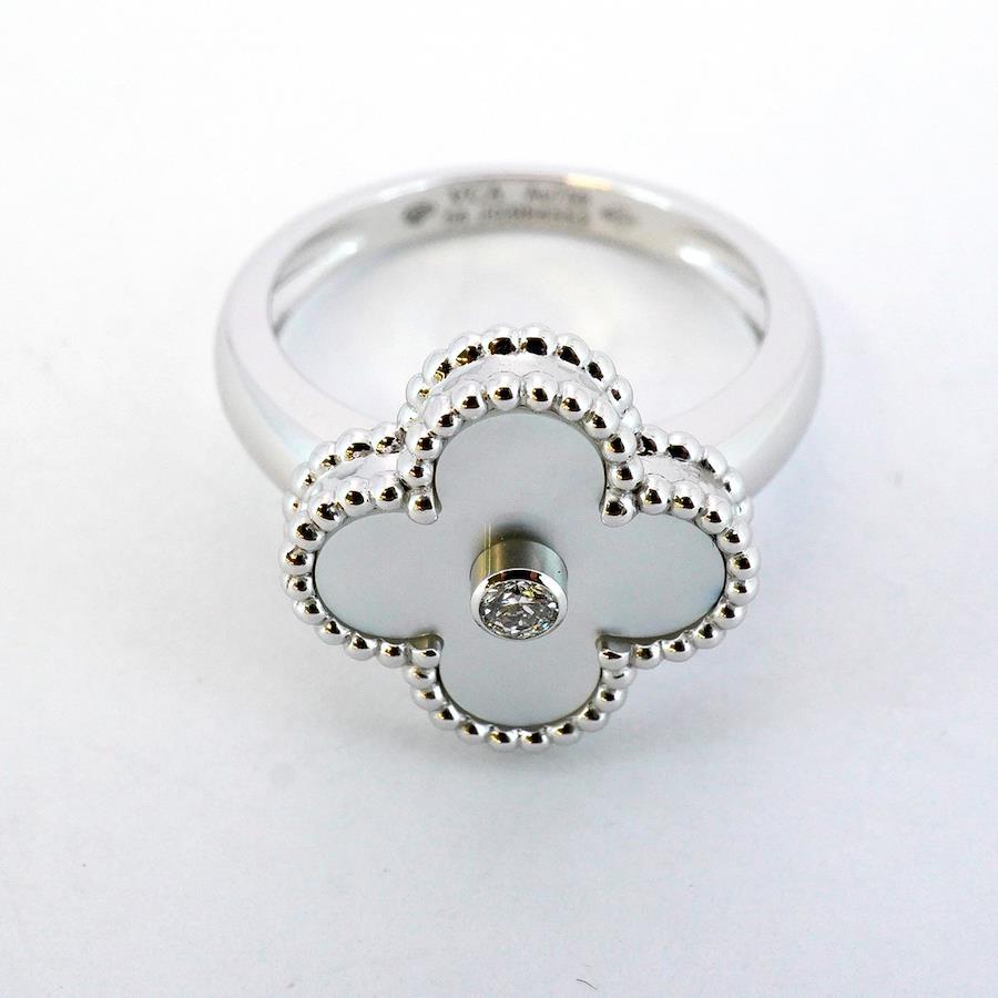 【5jib0378】ヴァンクリーフ&アーペル リング ヴィンテージ アルハンブラ 1PD K18WG ホワイトゴールド ダイヤモンド マザーオブパール #54【中古】レディース