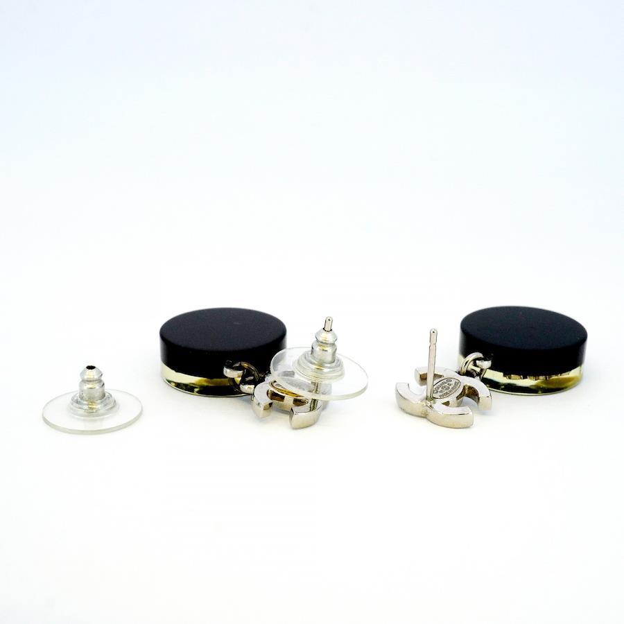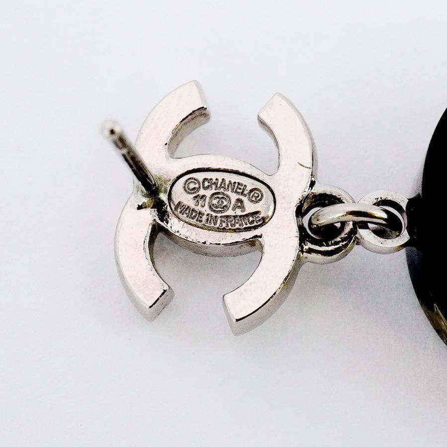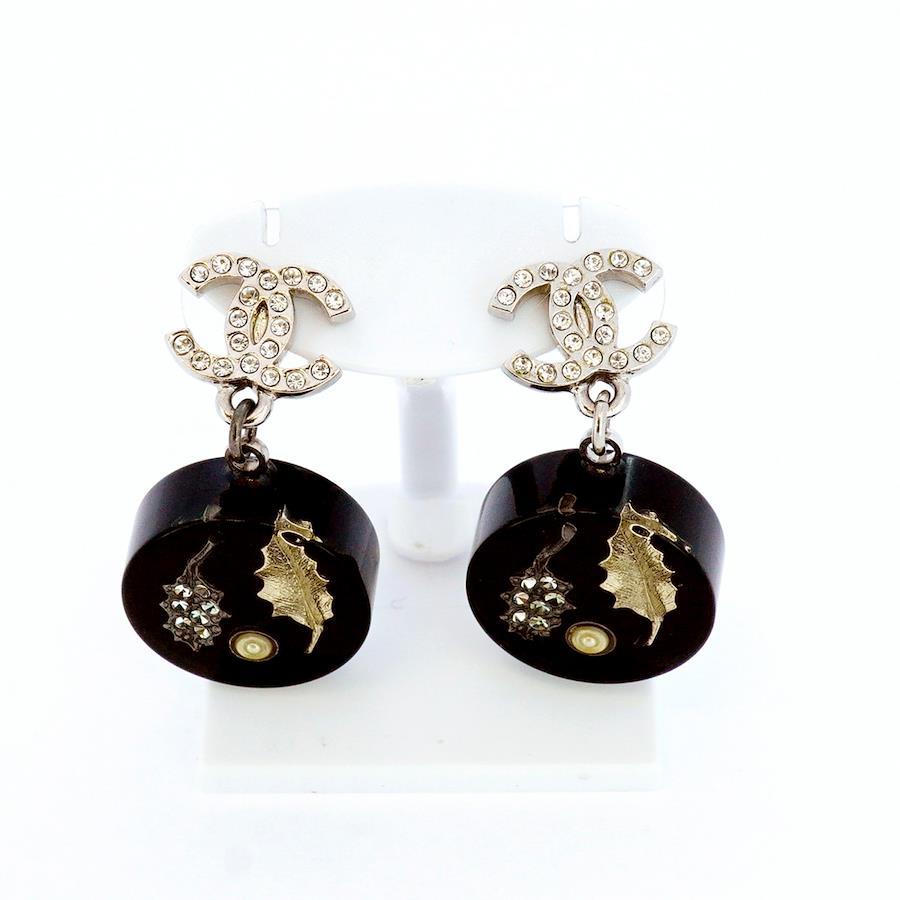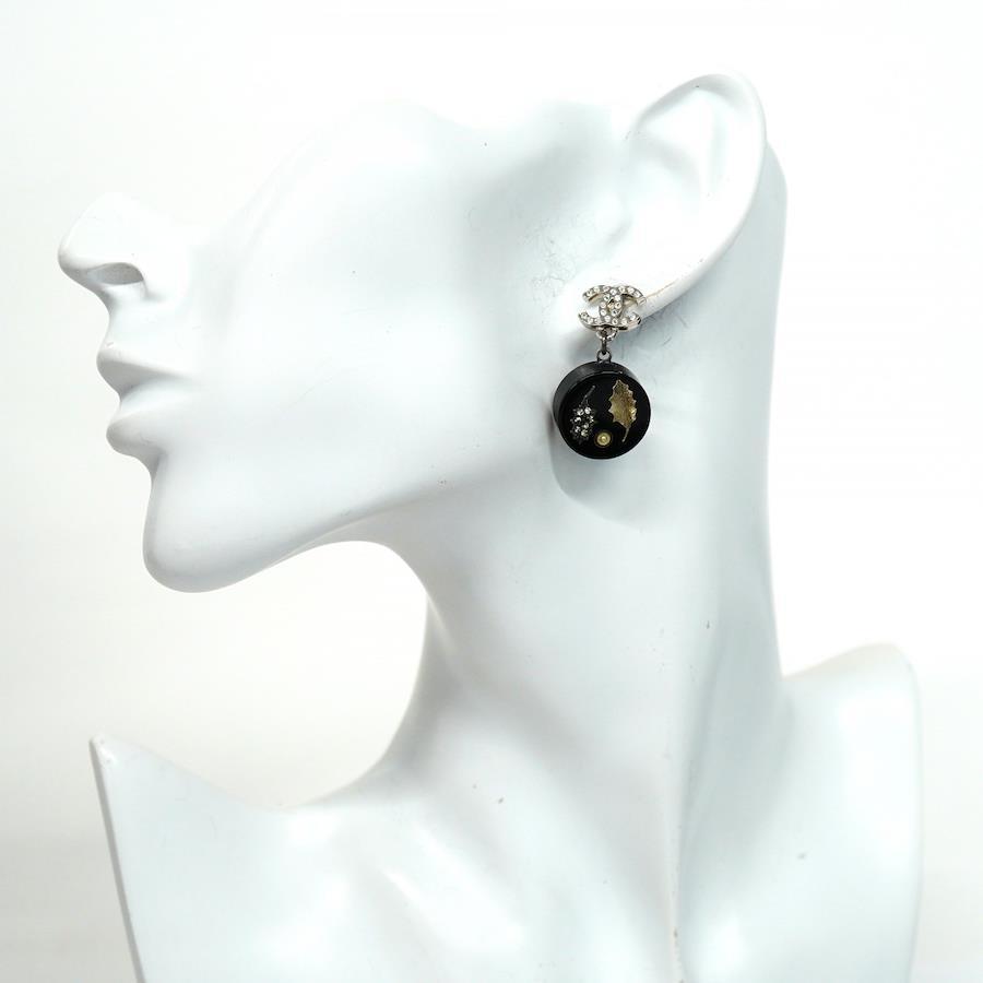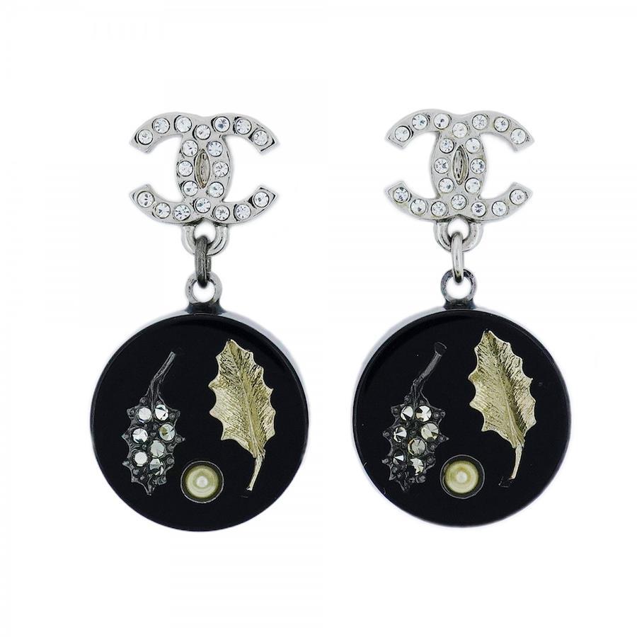 【5jib0428】シャネル ピアス ココマーク 丸型 サークル リーフモチーフ メタル フェイクパール ラインストーン シルバー ブラック【中古】レディース