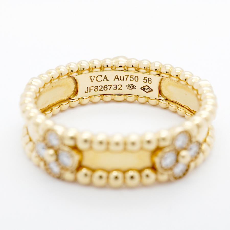 【5jib0928-2】ヴァンクリーフ&アーペル リング ペルレ スィートクローバー K18YG イエローゴールド ダイヤモンド #58【中古】メンズ レディース ユニセックス