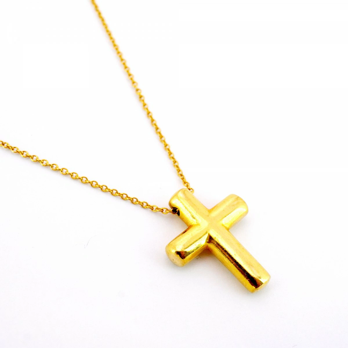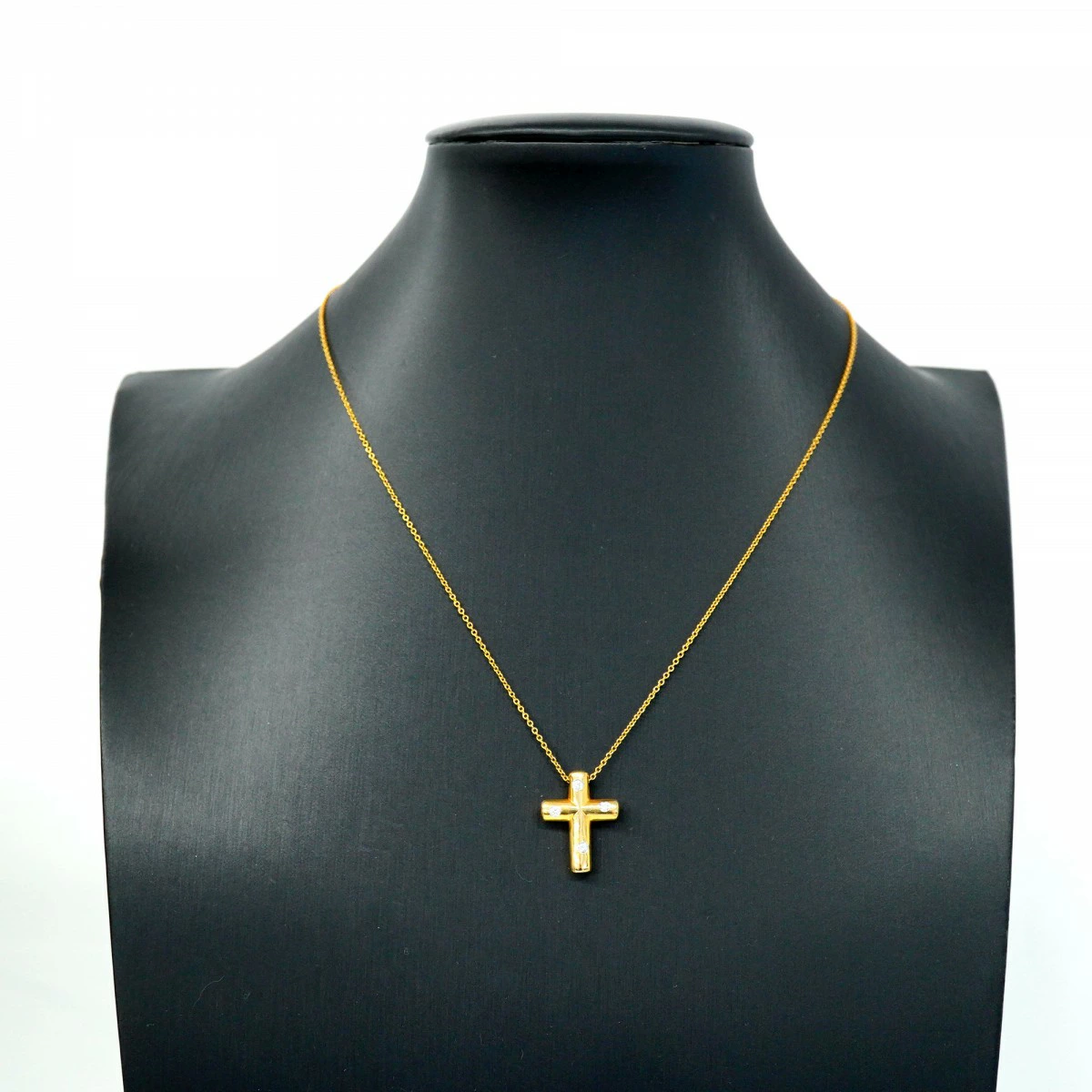 【5jmb0431】ティファニー ネックレス ドッツ クロス 4PD K18YG イエローゴールド ダイヤモンド【中古】レディース