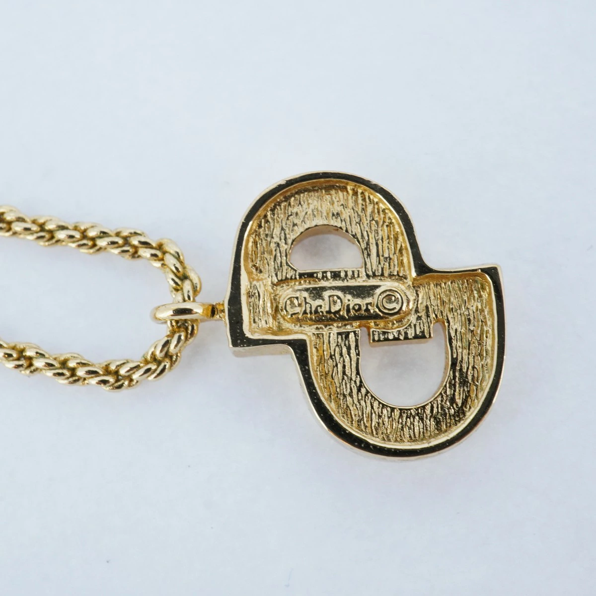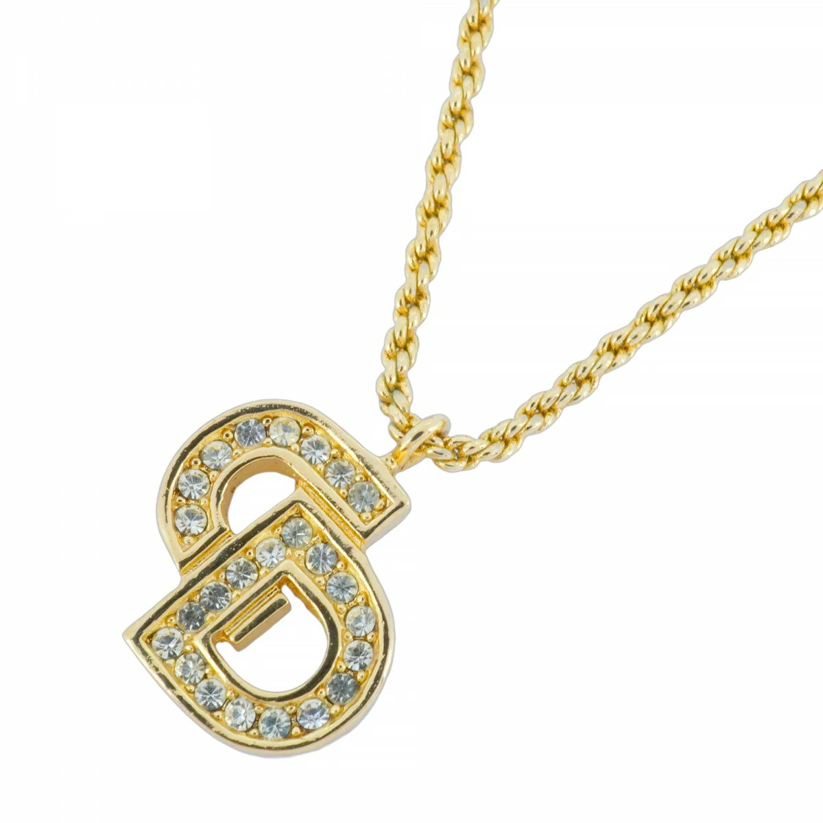 【5jmb0706】クリスチャンディオール ネックレス CDロゴ GPメッキ ラインストーン ゴールド【中古】レディース