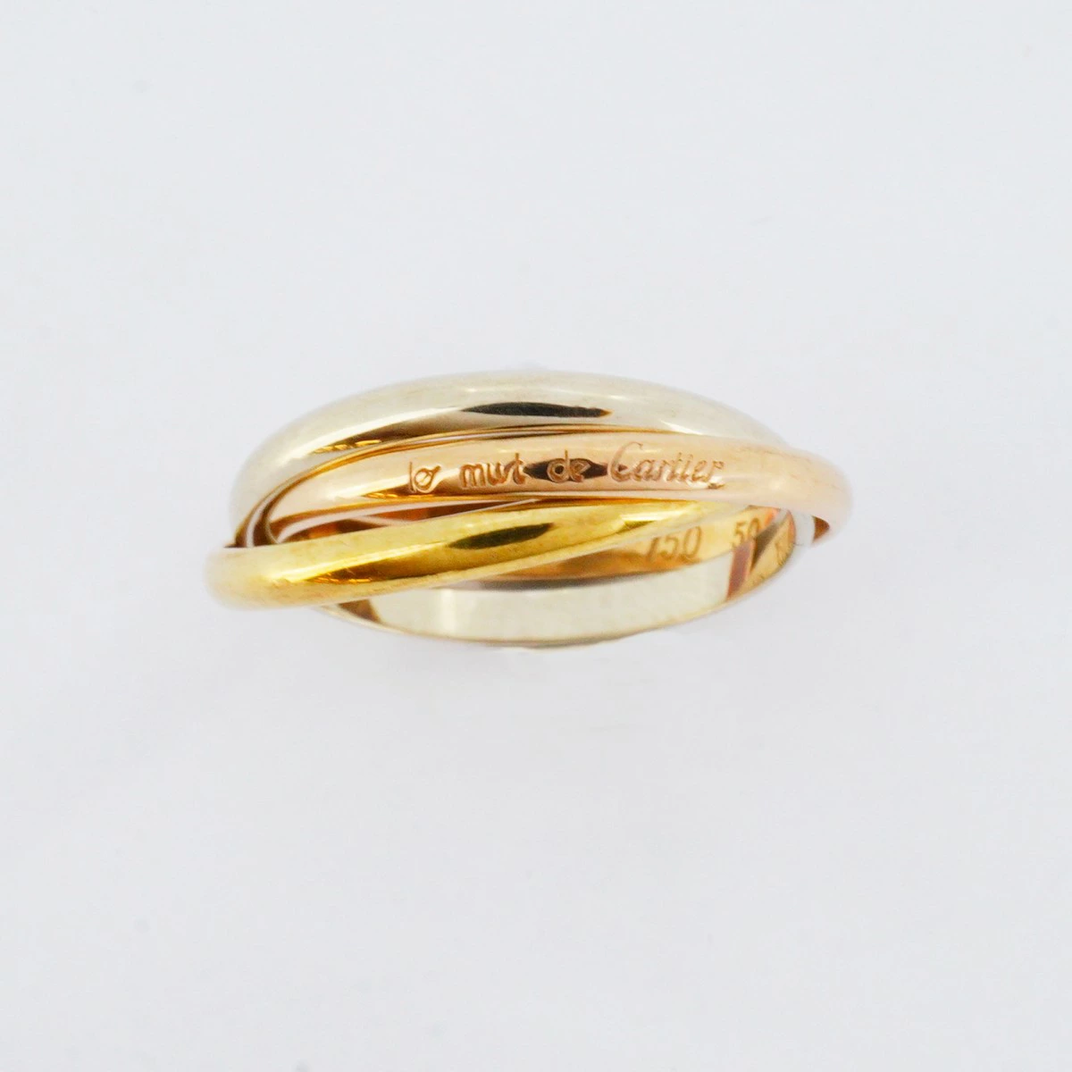 【5jmb0762】カルティエ リング トリニティ K18YG イエローゴールド K18WG ホワイトゴールド K18PG ピンクゴールド #50【中古】レディース