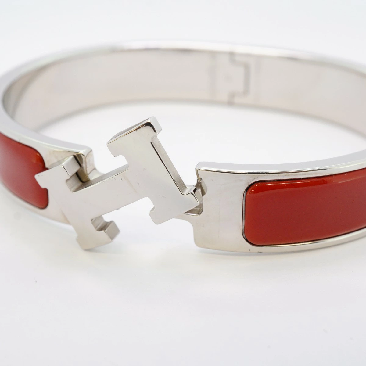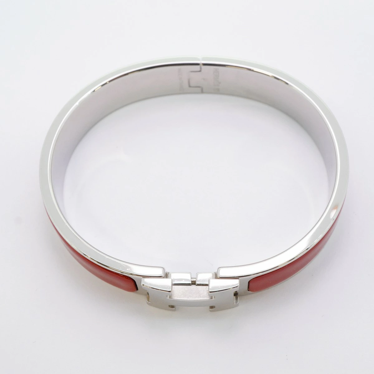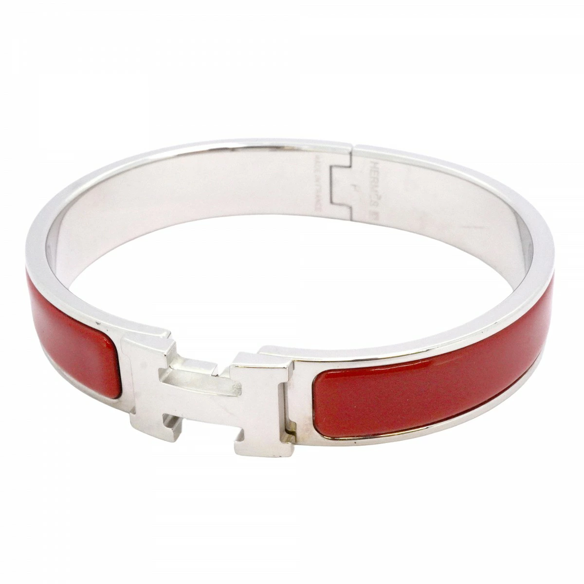 【5jmb0780】エルメス バングル クリッククラックPM メタル シルバー レッド【中古】レディース