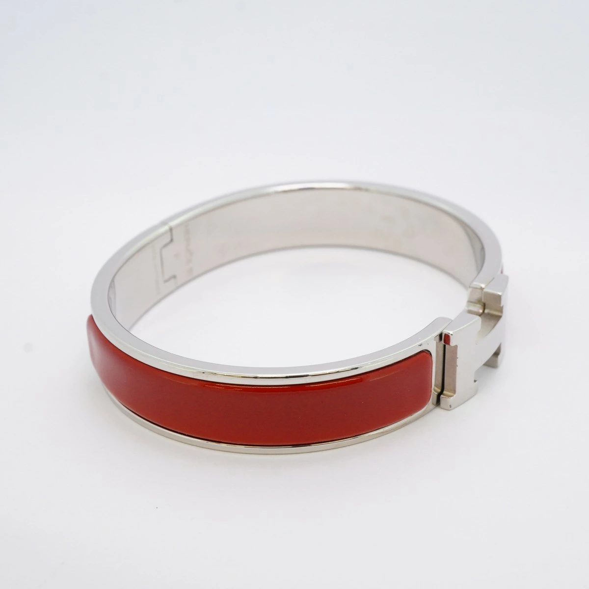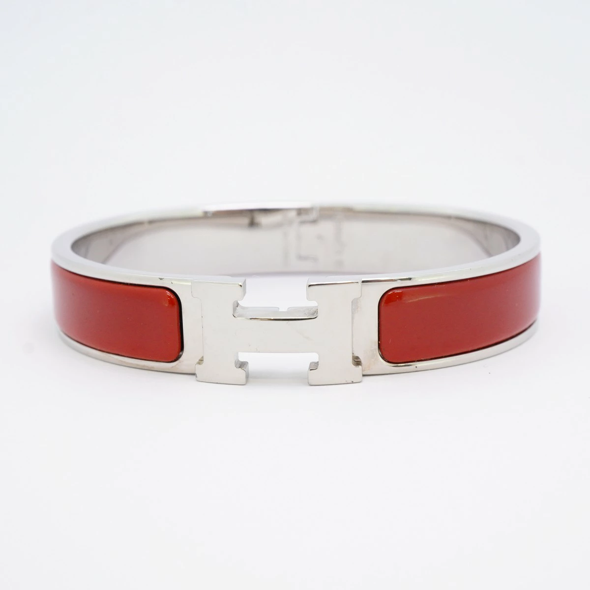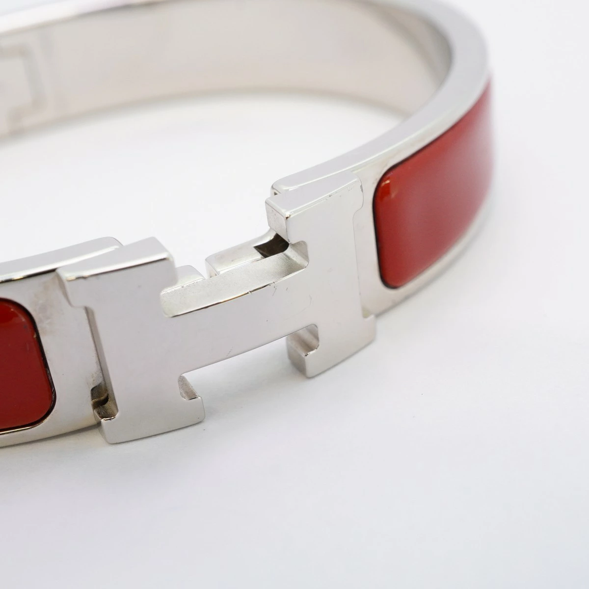 【5jmb0780】エルメス バングル クリッククラックPM メタル シルバー レッド【中古】レディース