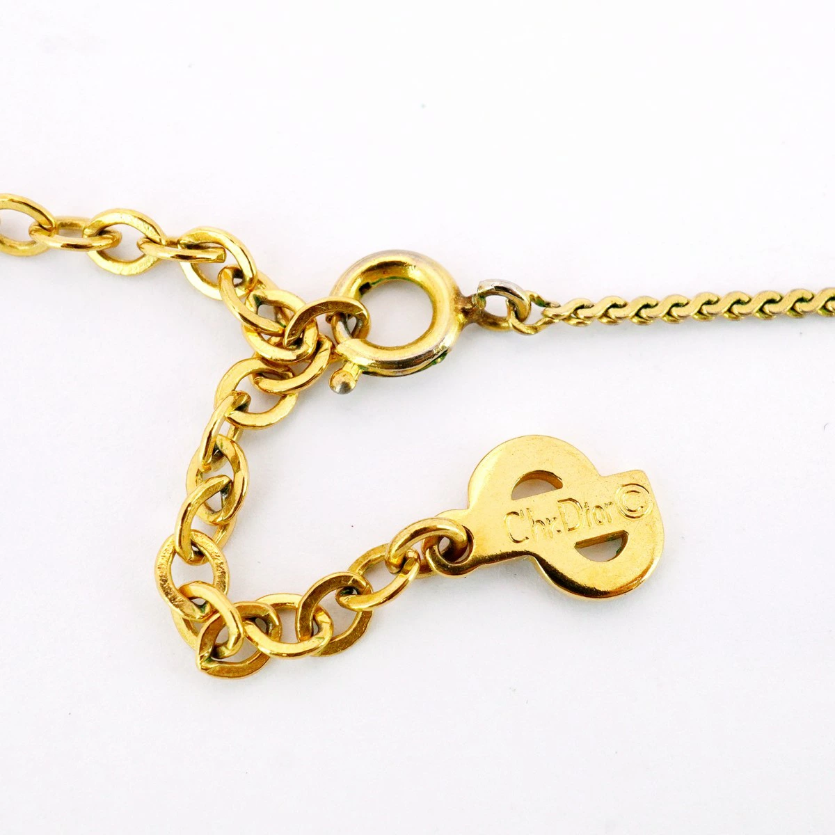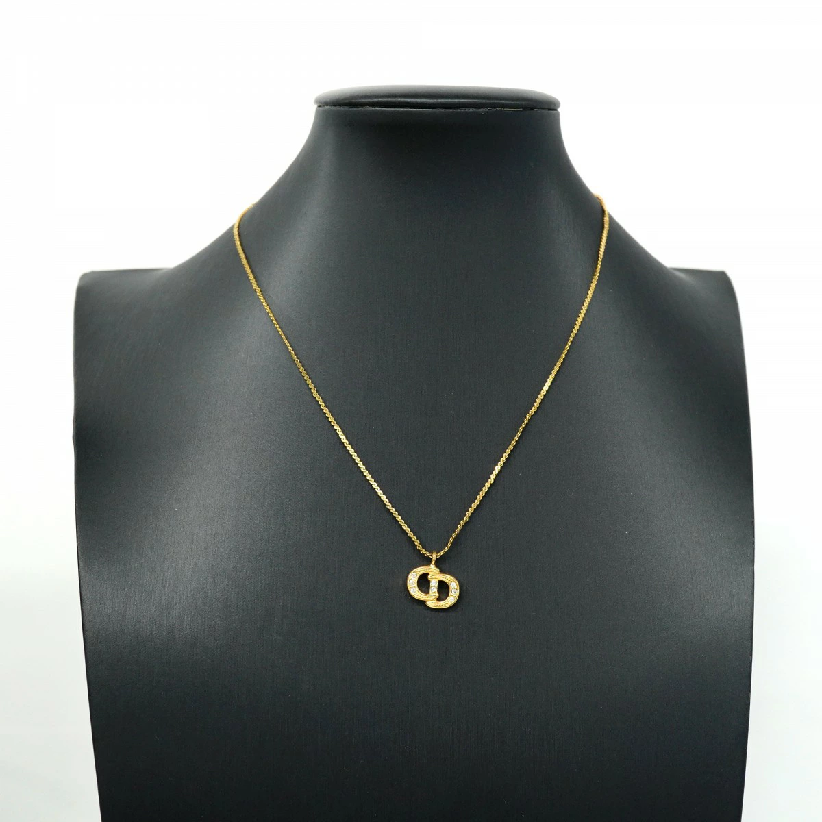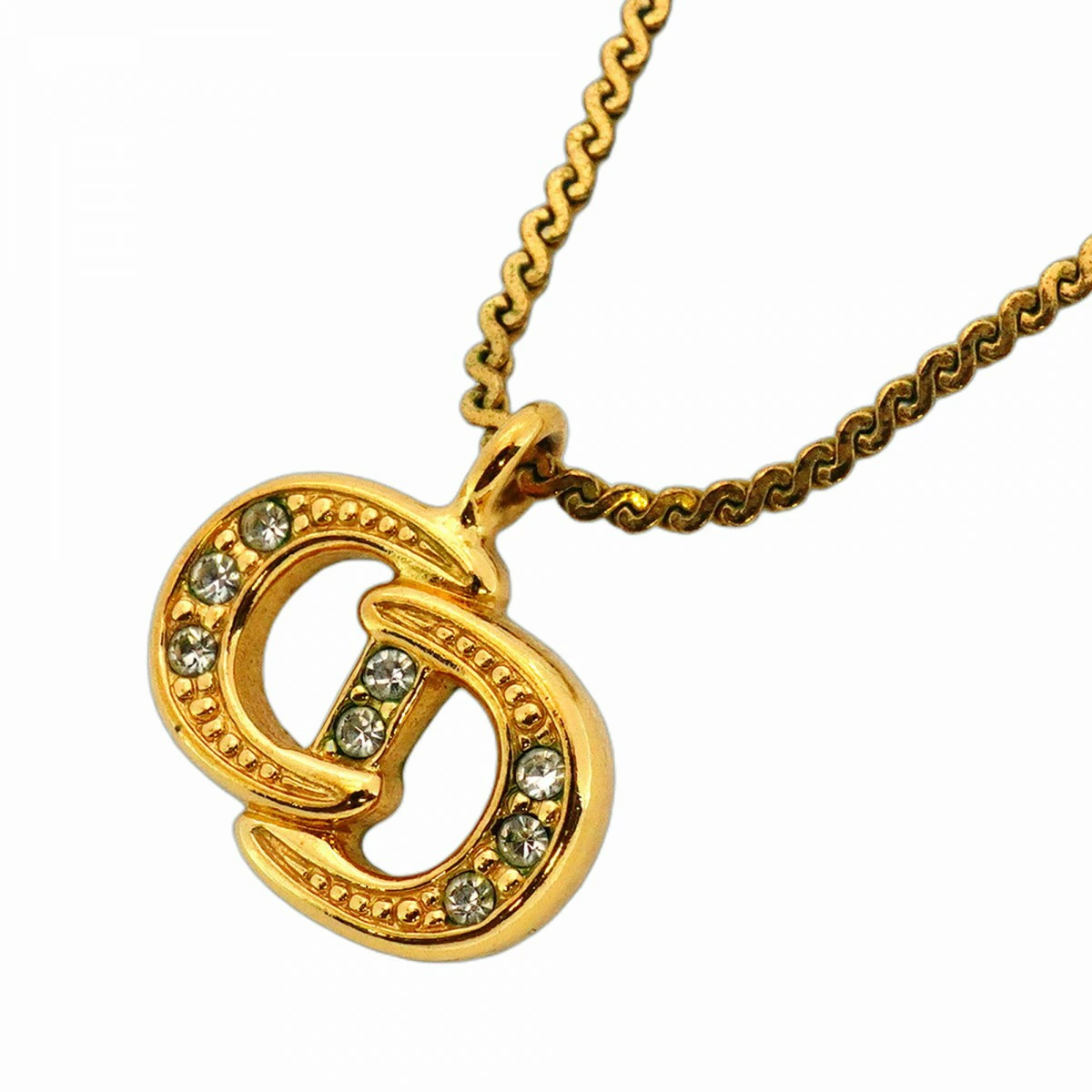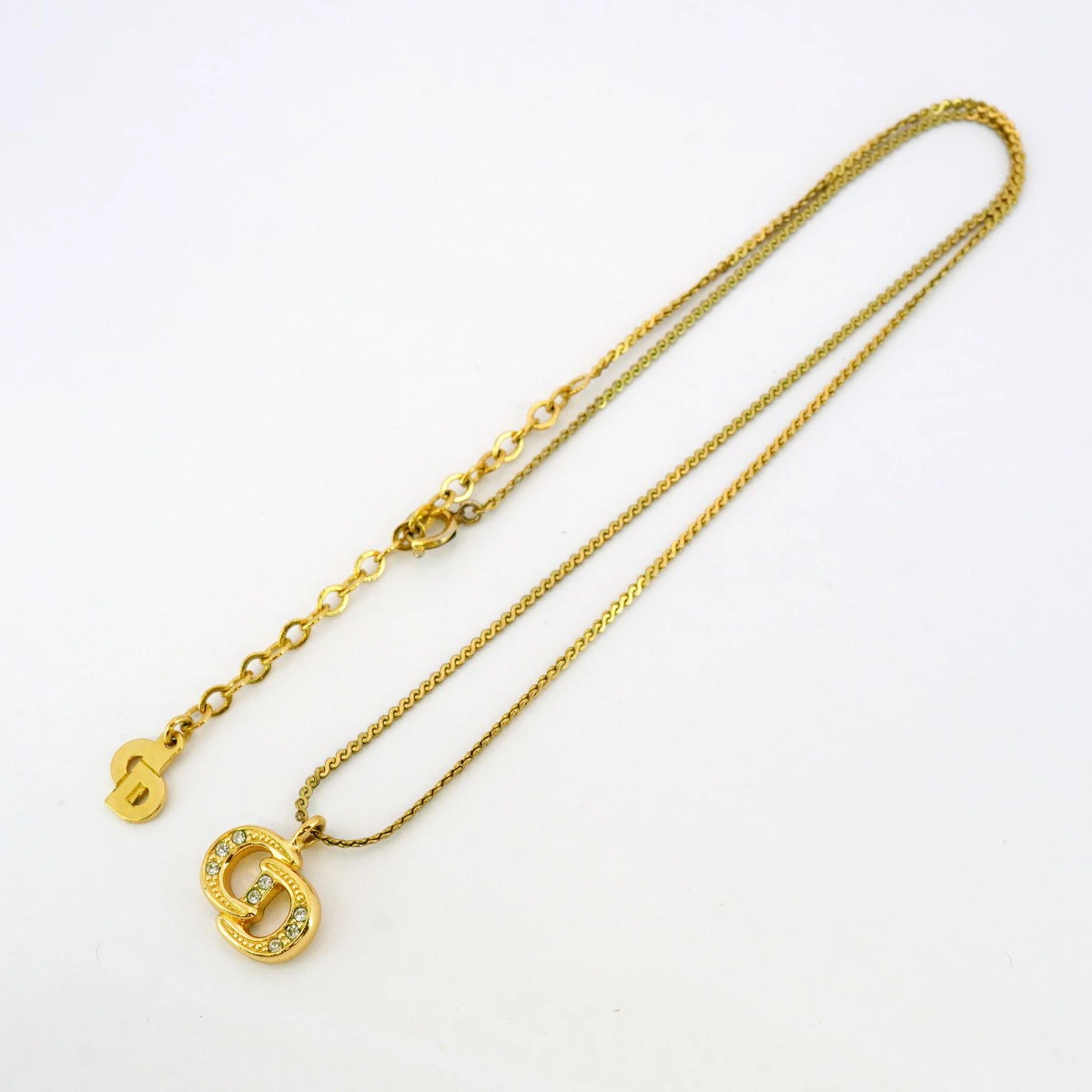 【5jmb0828】クリスチャンディオール ネックレス CDロゴ GPメッキ ラインストーン ゴールド【中古】レディース