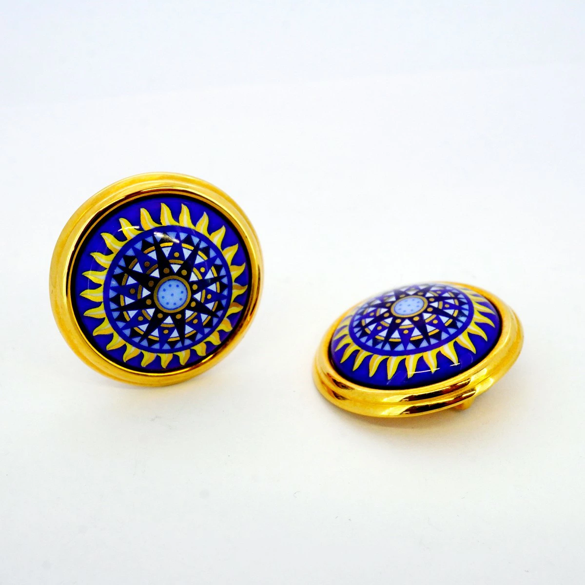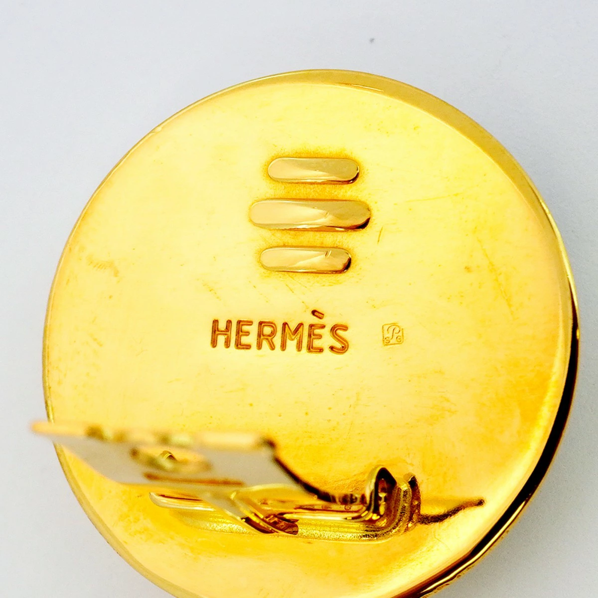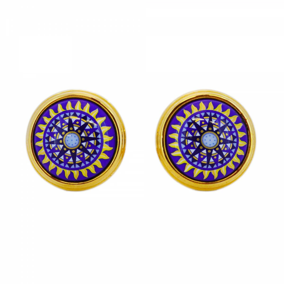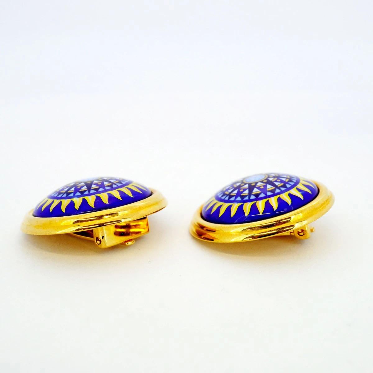 【5jmb0841】エルメス イヤリング エマイユ 丸型 サークル GPメッキ 七宝焼き ゴールド ブルー マルチカラー【中古】レディース