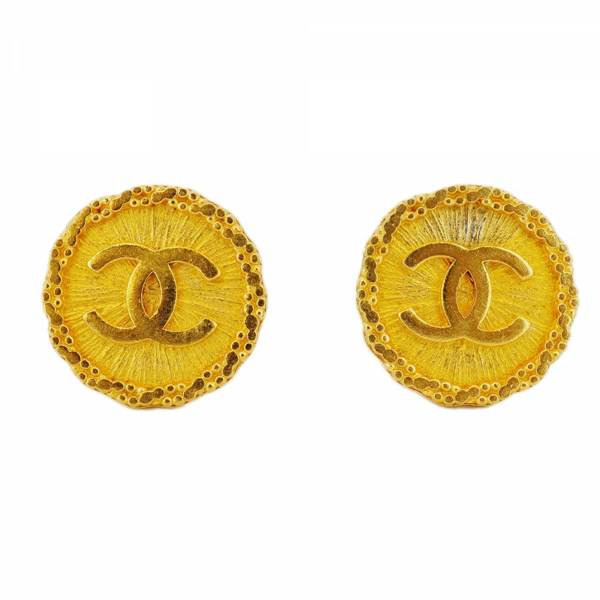 【5jmb0845】シャネル イヤリング ヴィンテージ ココマーク 丸型 サークル GPメッキ ゴールド【中古】レディース
