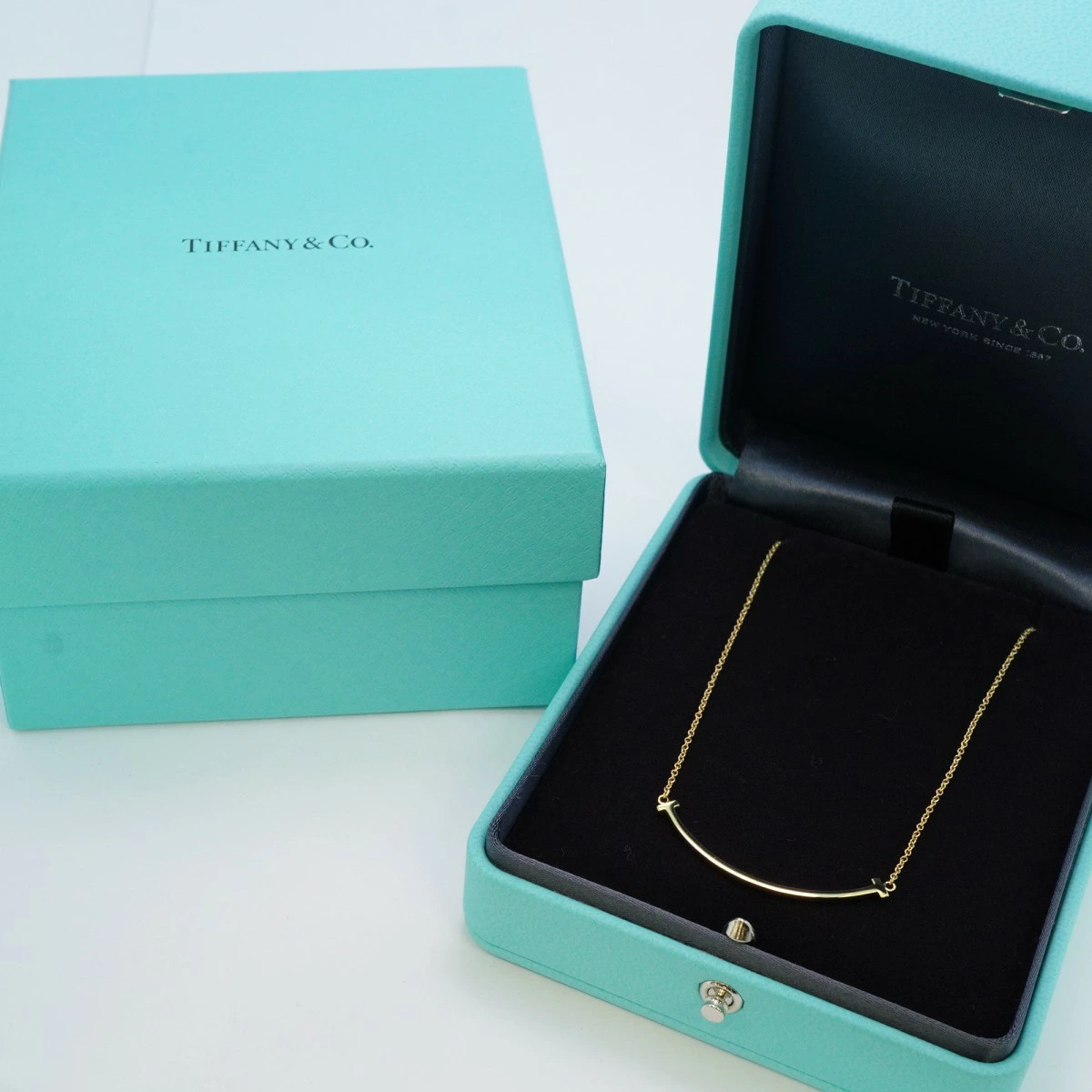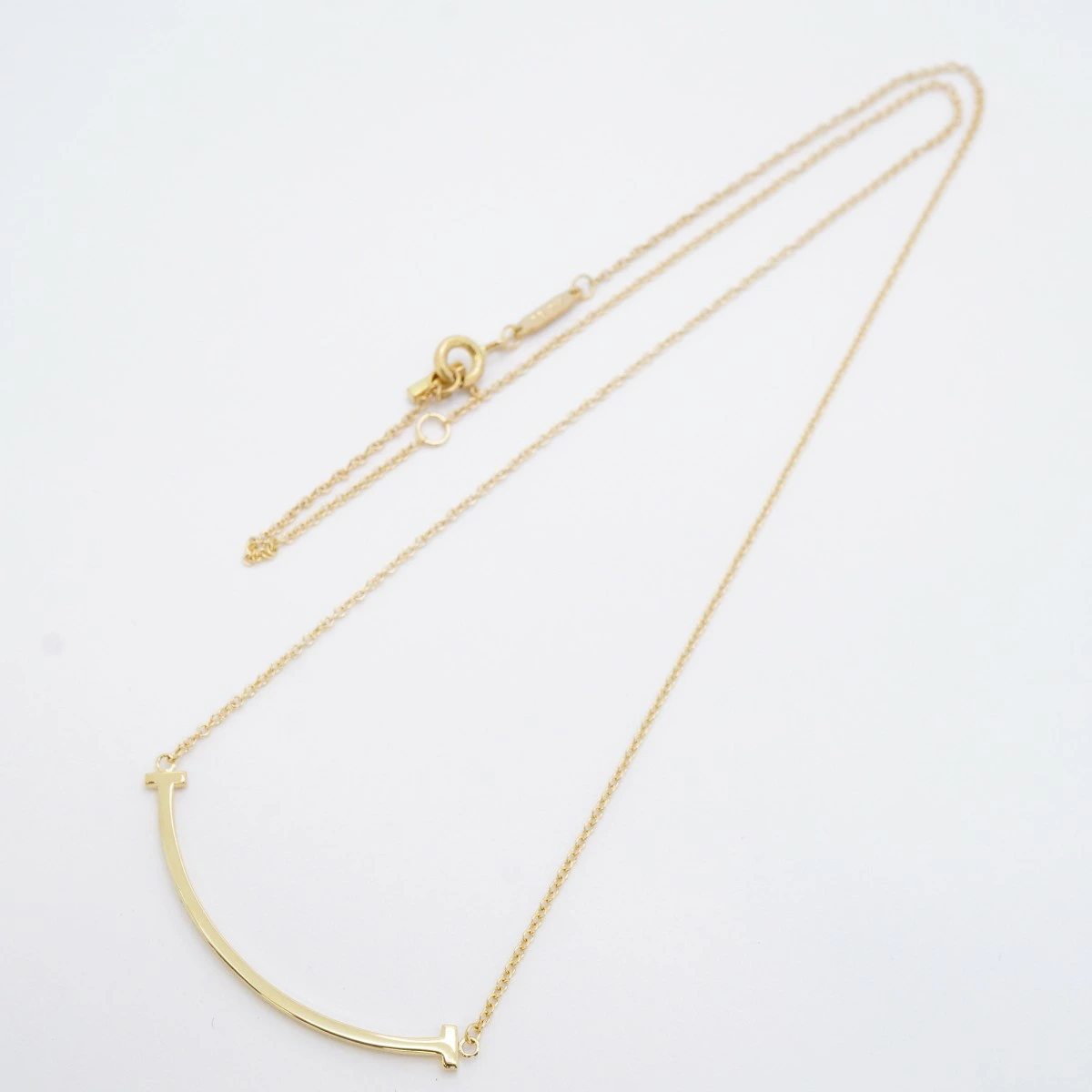 【5jmb0888】ティファニー ネックレス Tスマイル スモール K18YG イエローゴールド【中古】レディース