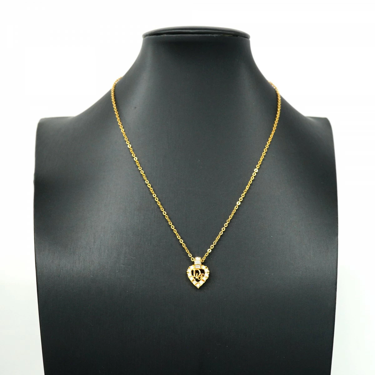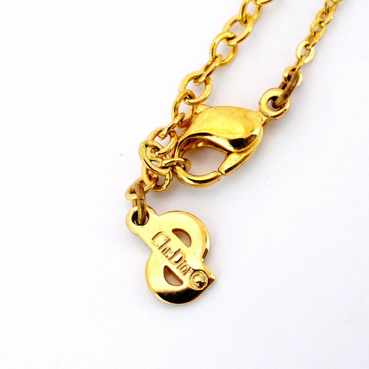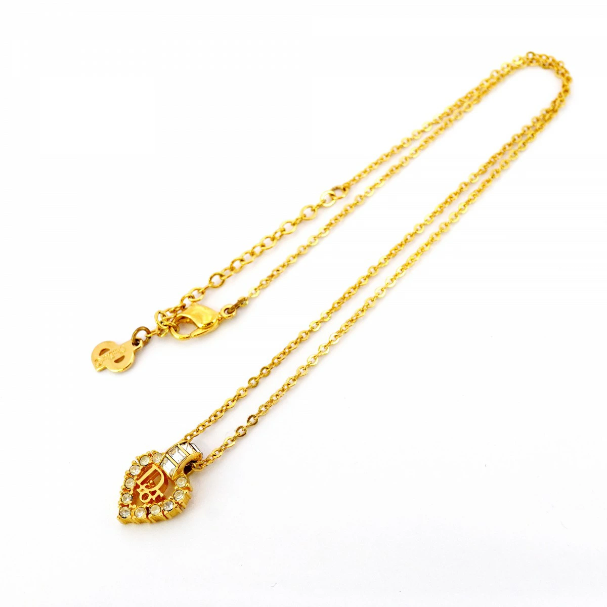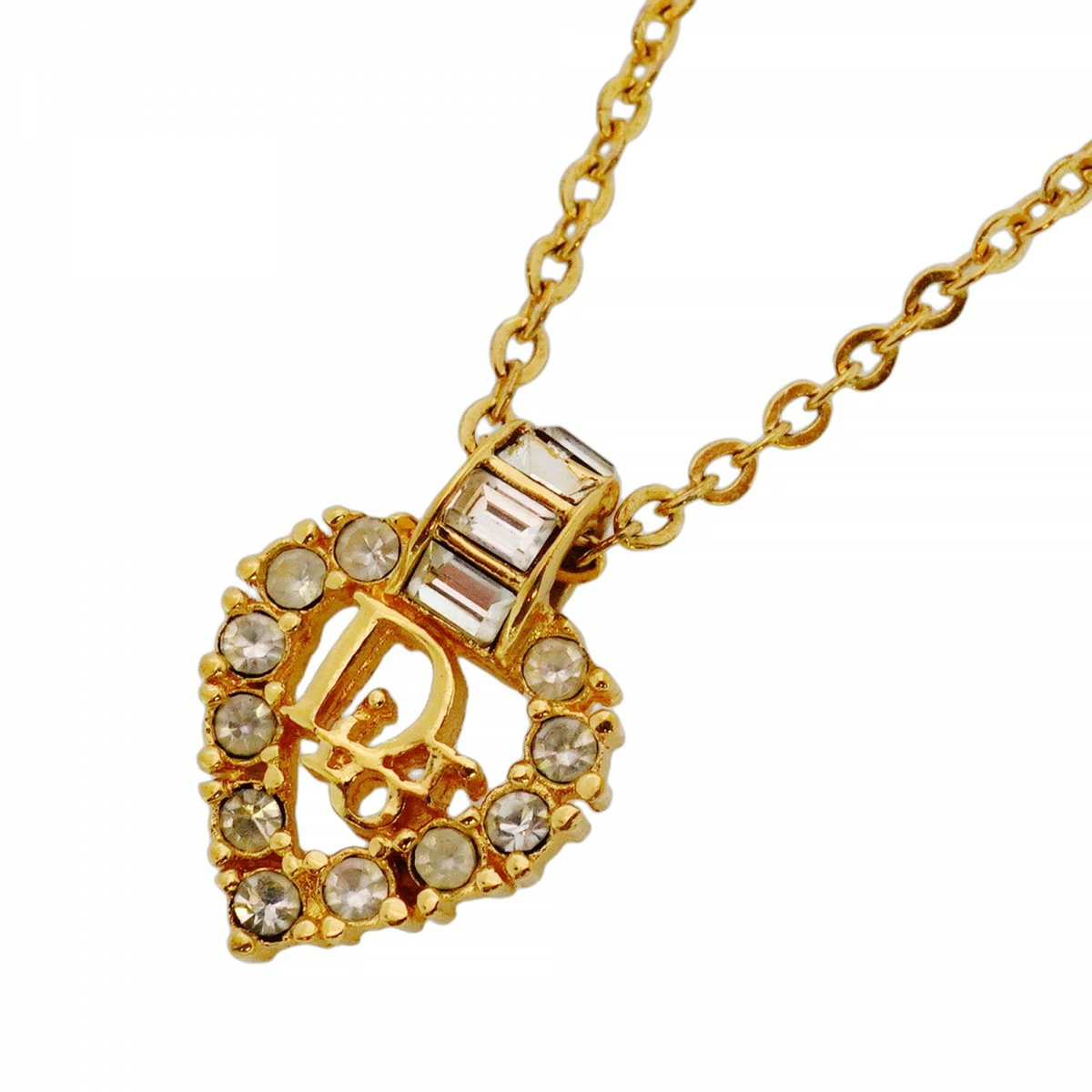 【5jmb0925】クリスチャンディオール ネックレス ディオールロゴ ハートモチーフ GPメッキ ラインストーン ゴールド【中古】レディース