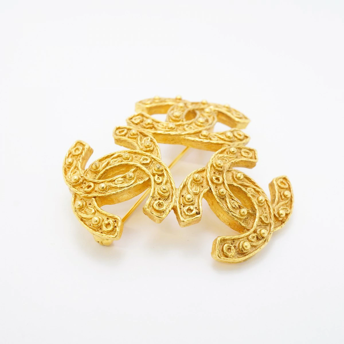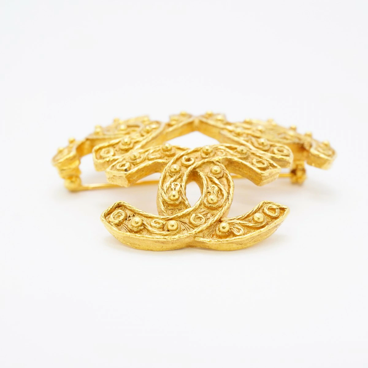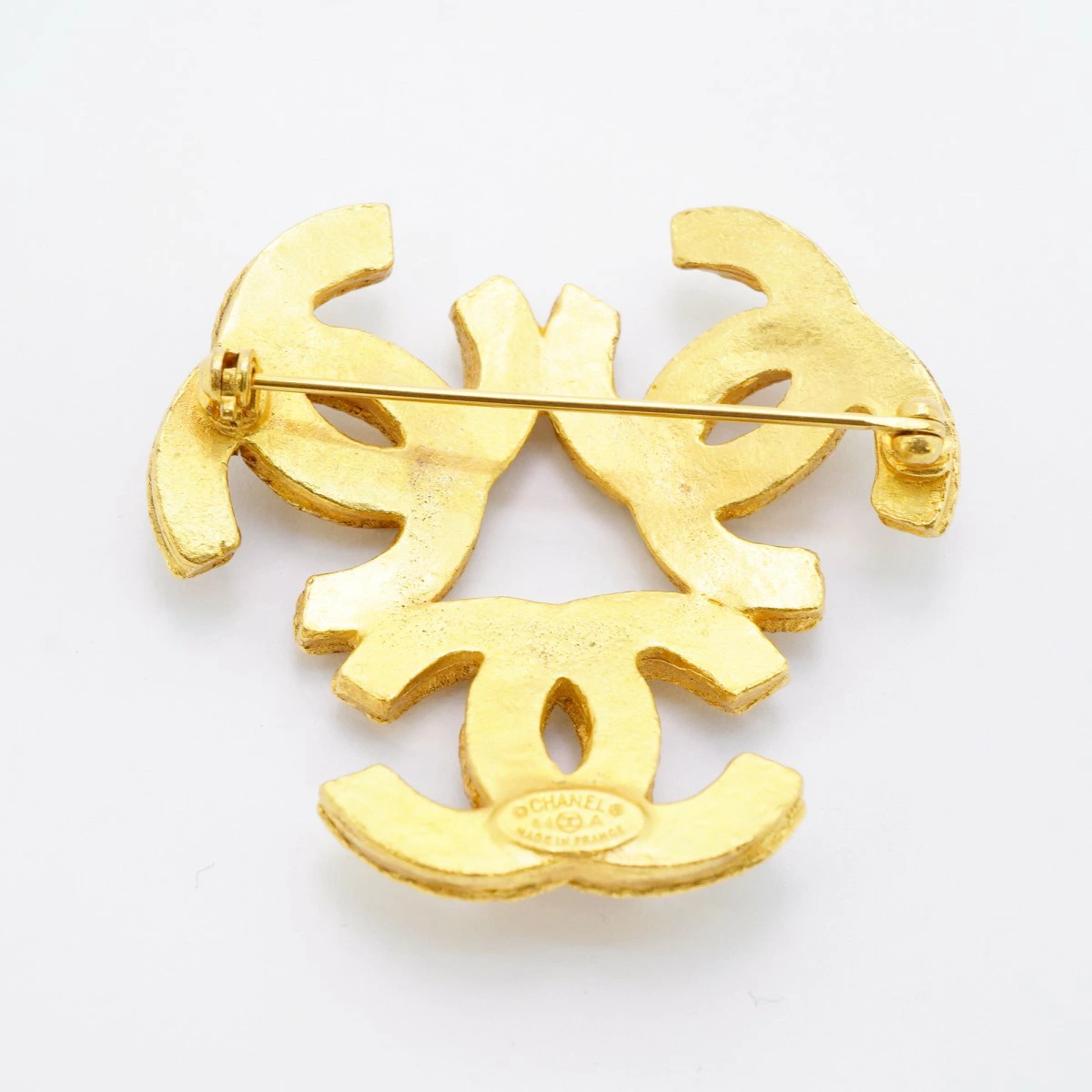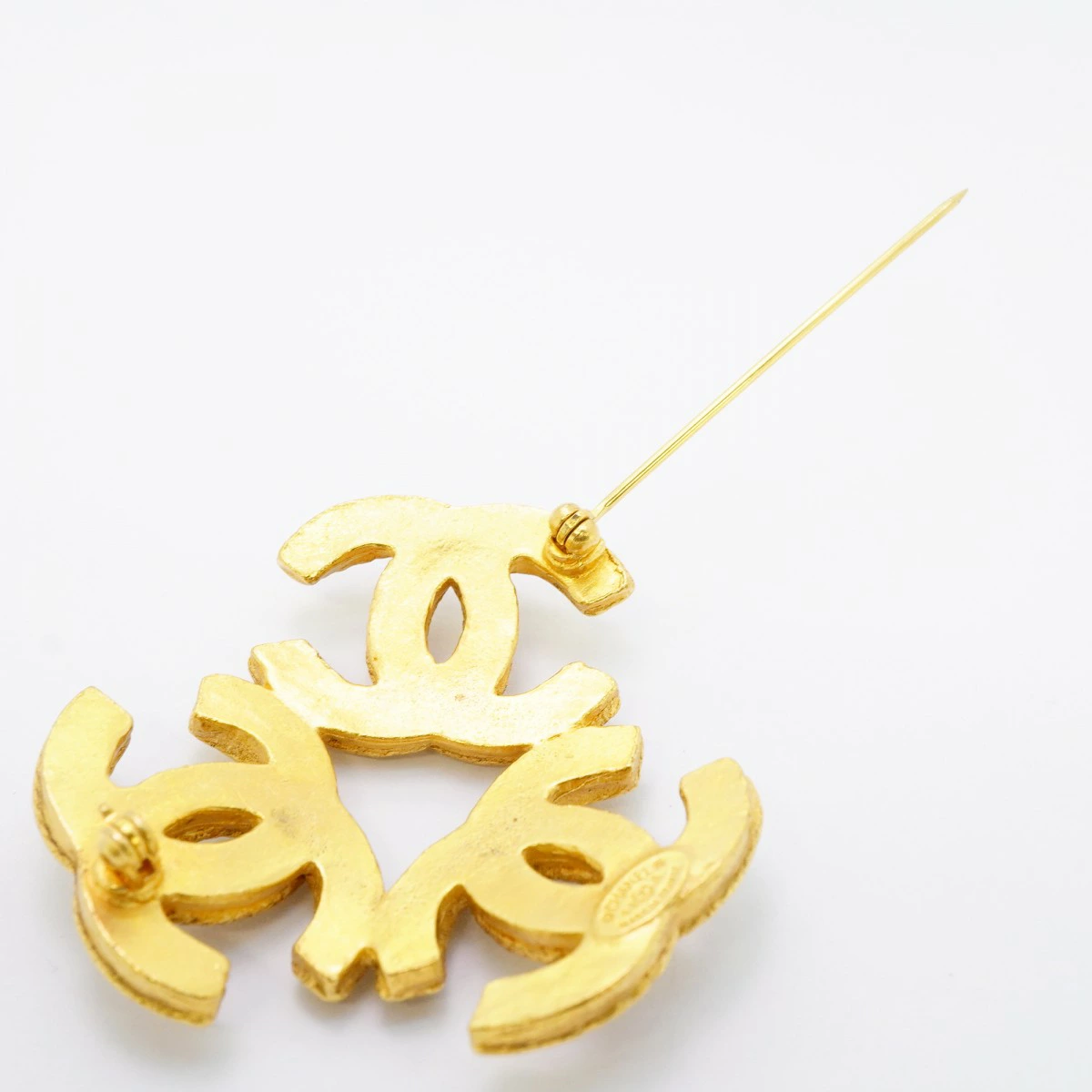 【5job0036】シャネル ブローチ ヴィンテージ トリプルココ GPメッキ ゴールド【中古】レディース