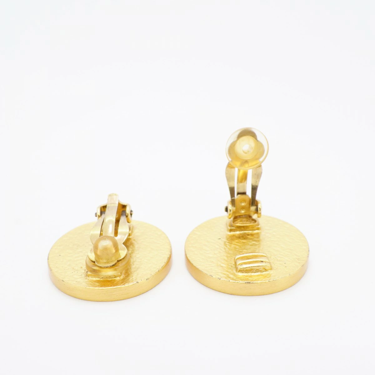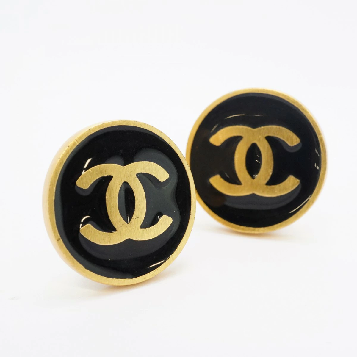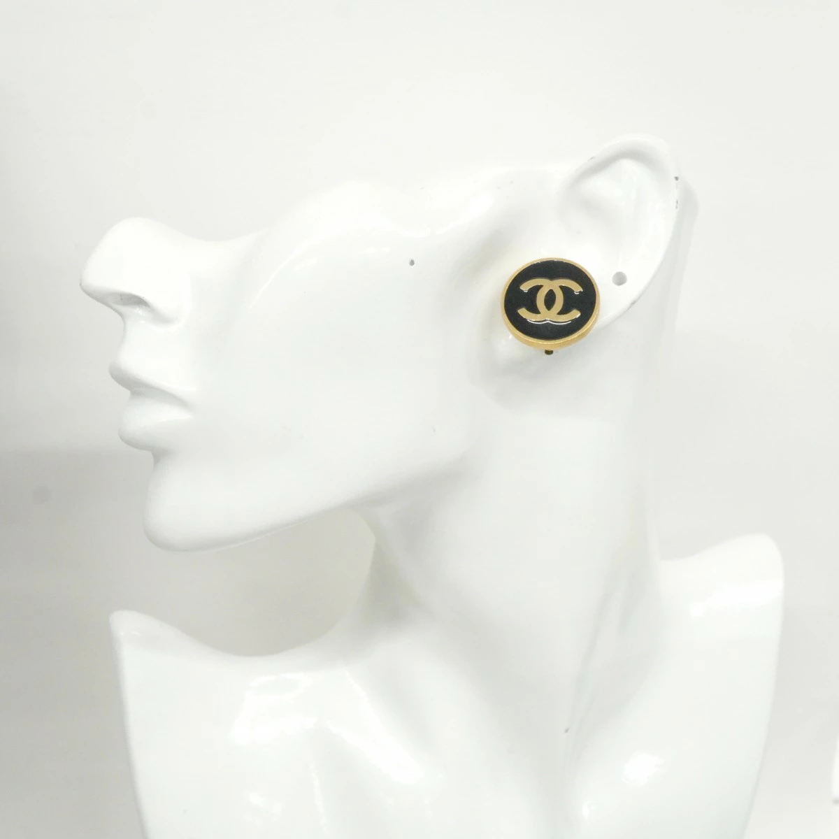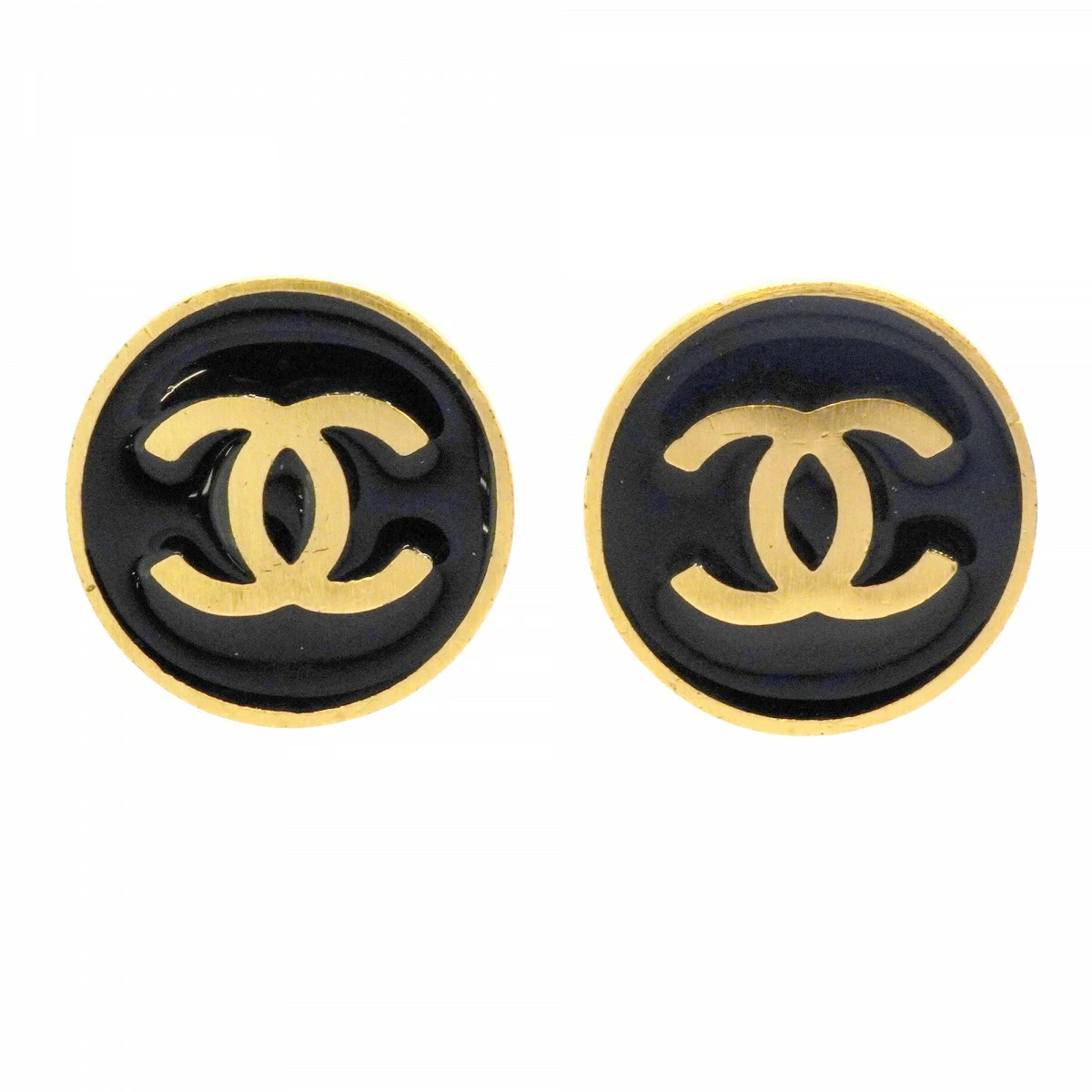 【5job0055】シャネル イヤリング ココマーク 丸型 サークル GPメッキ ゴールド ブラック【中古】レディース