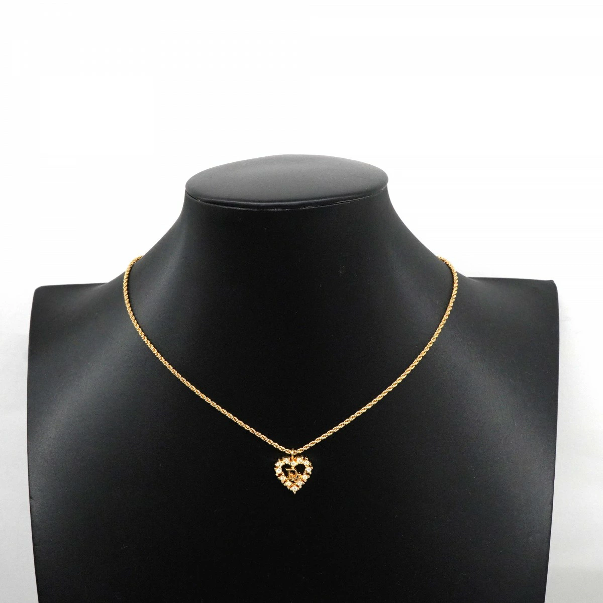 【5job0114】クリスチャンディオール ネックレス ディオールロゴ ハートモチーフ GPメッキ ラインストーン ゴールド【中古】レディース