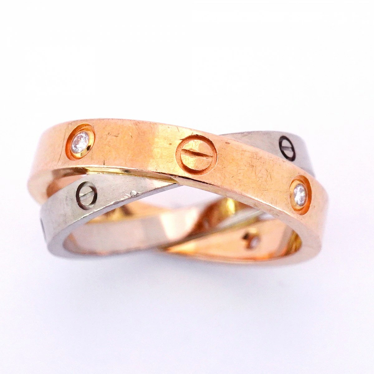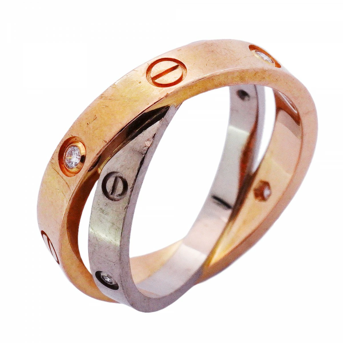 【5job0140】カルティエ リング ビーラブ 6PD K18WG ホワイトゴールド K18PG ピンクゴールド ダイヤモンド #53【中古】レディース