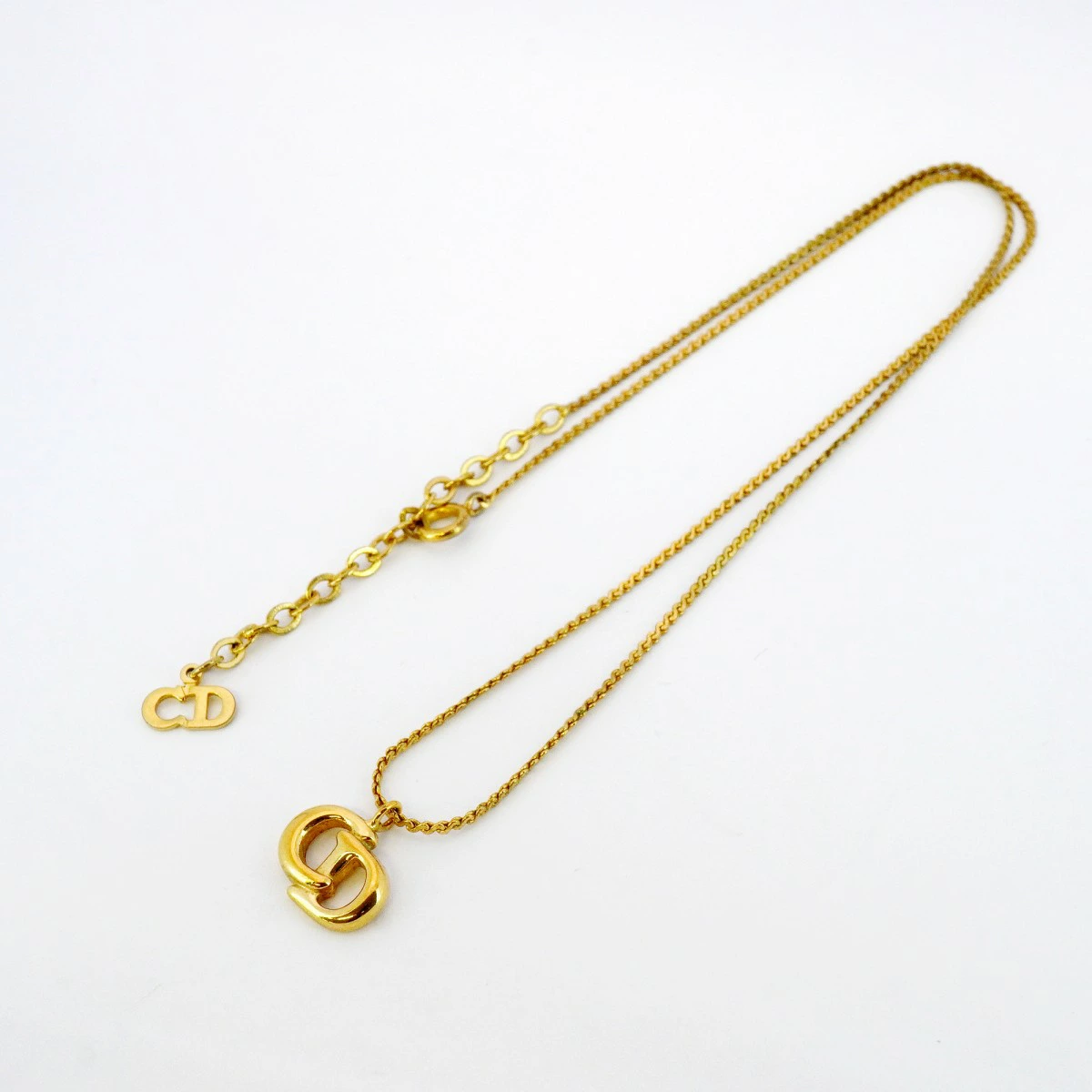 【5job0147】クリスチャンディオール ネックレス CDロゴ GPメッキ ゴールド【中古】レディース