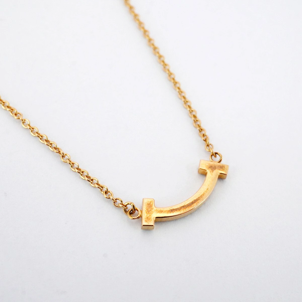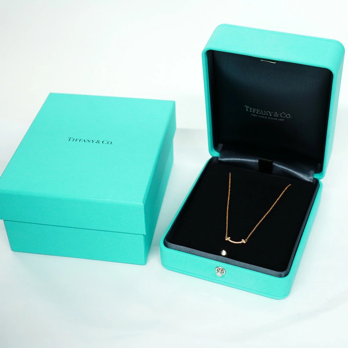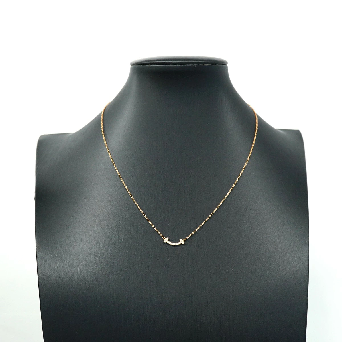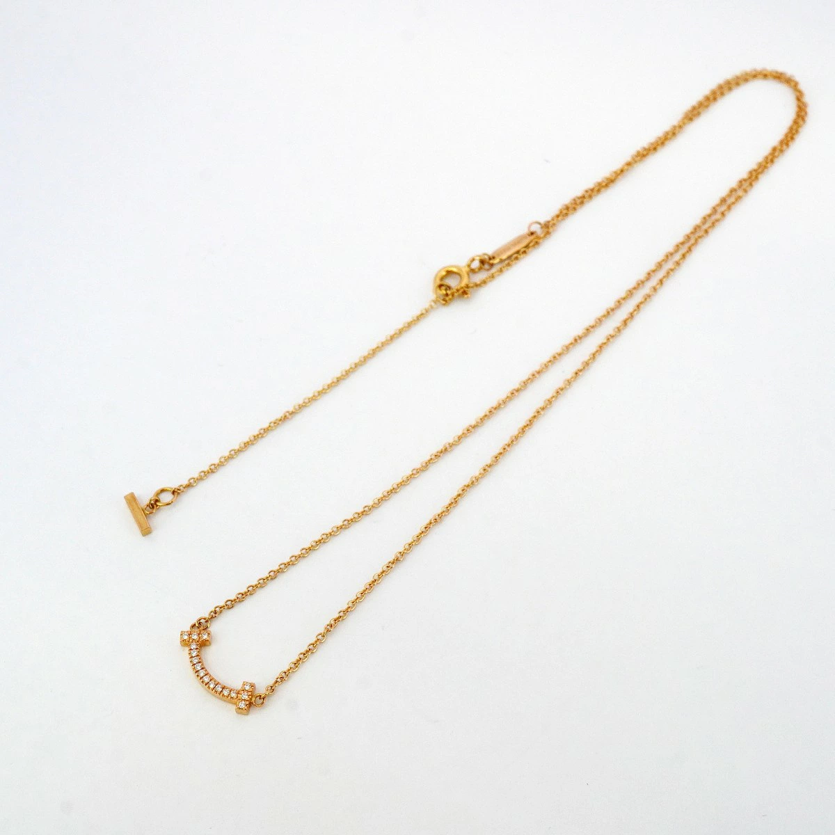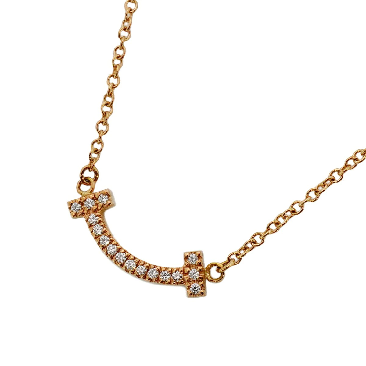 【5job0169】ティファニー ネックレス Tスマイル ミニ K18PG ピンクゴールド ダイヤモンド【中古】レディース
