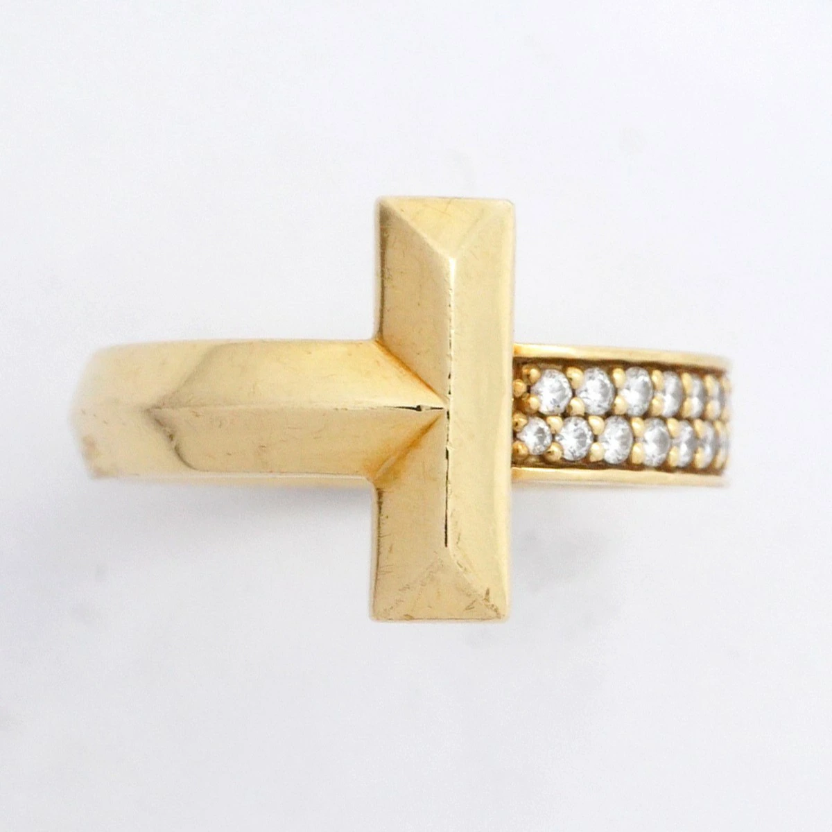 【5job0288】ティファニー リング Tワン K18YG イエローゴールド ダイヤモンド 0.24ct 15.5号【中古】メンズ レディース ユニセックス