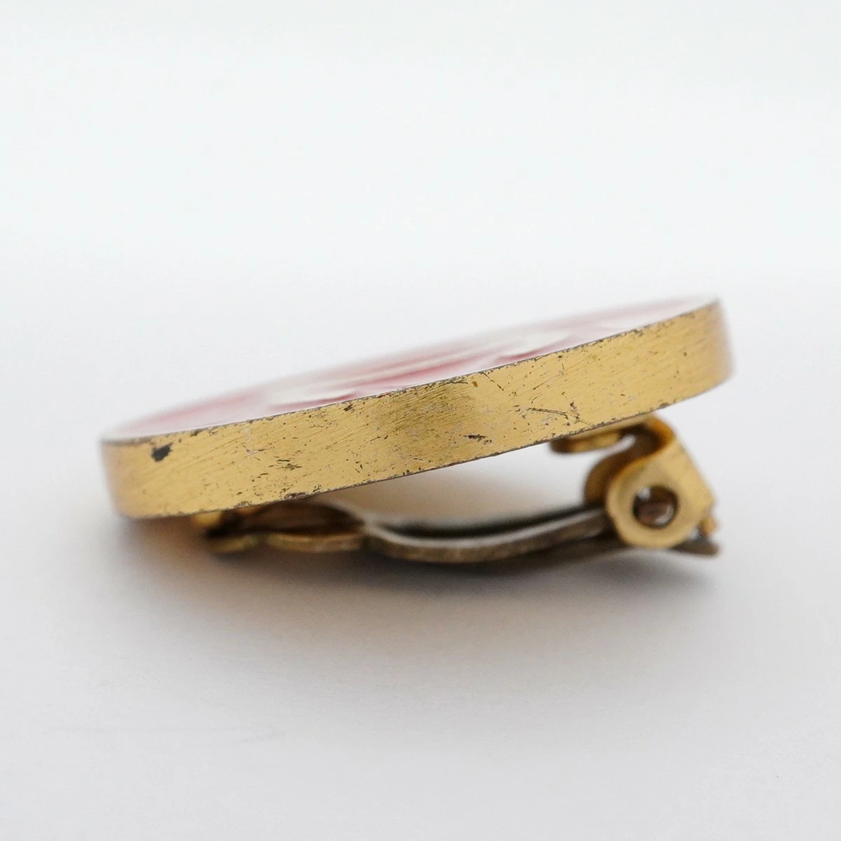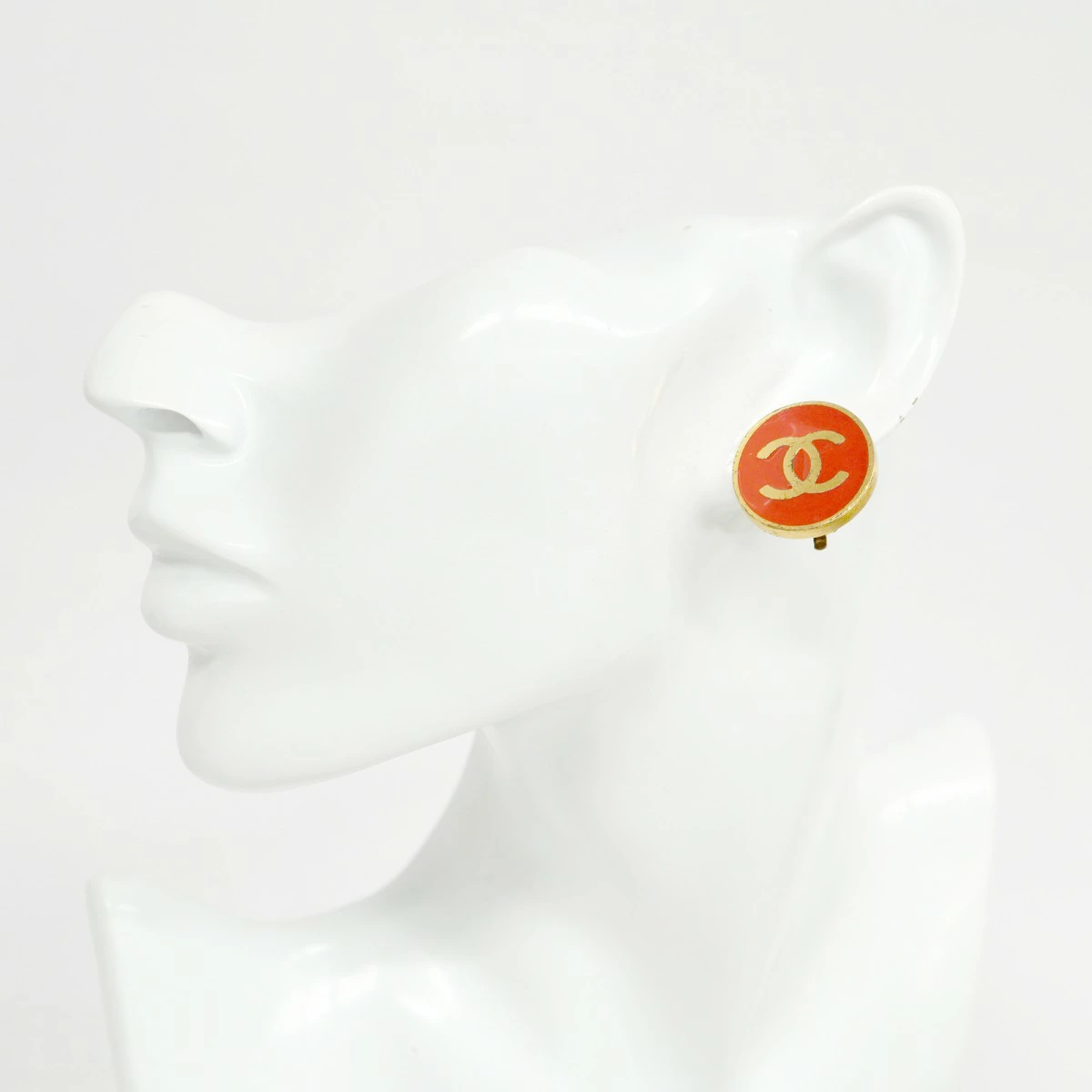 【5job0299】シャネル イヤリング ココマーク 丸型 サークル GPメッキ ゴールド レッド【中古】レディース
