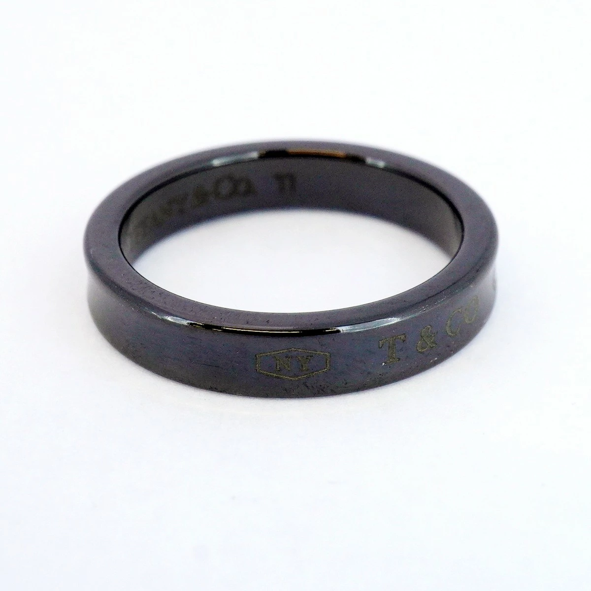 【5job0333】ティファニー リング ナロー チタン ブラック 15号【中古】メンズ レディース ユニセックス