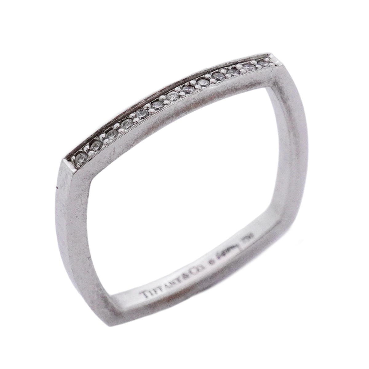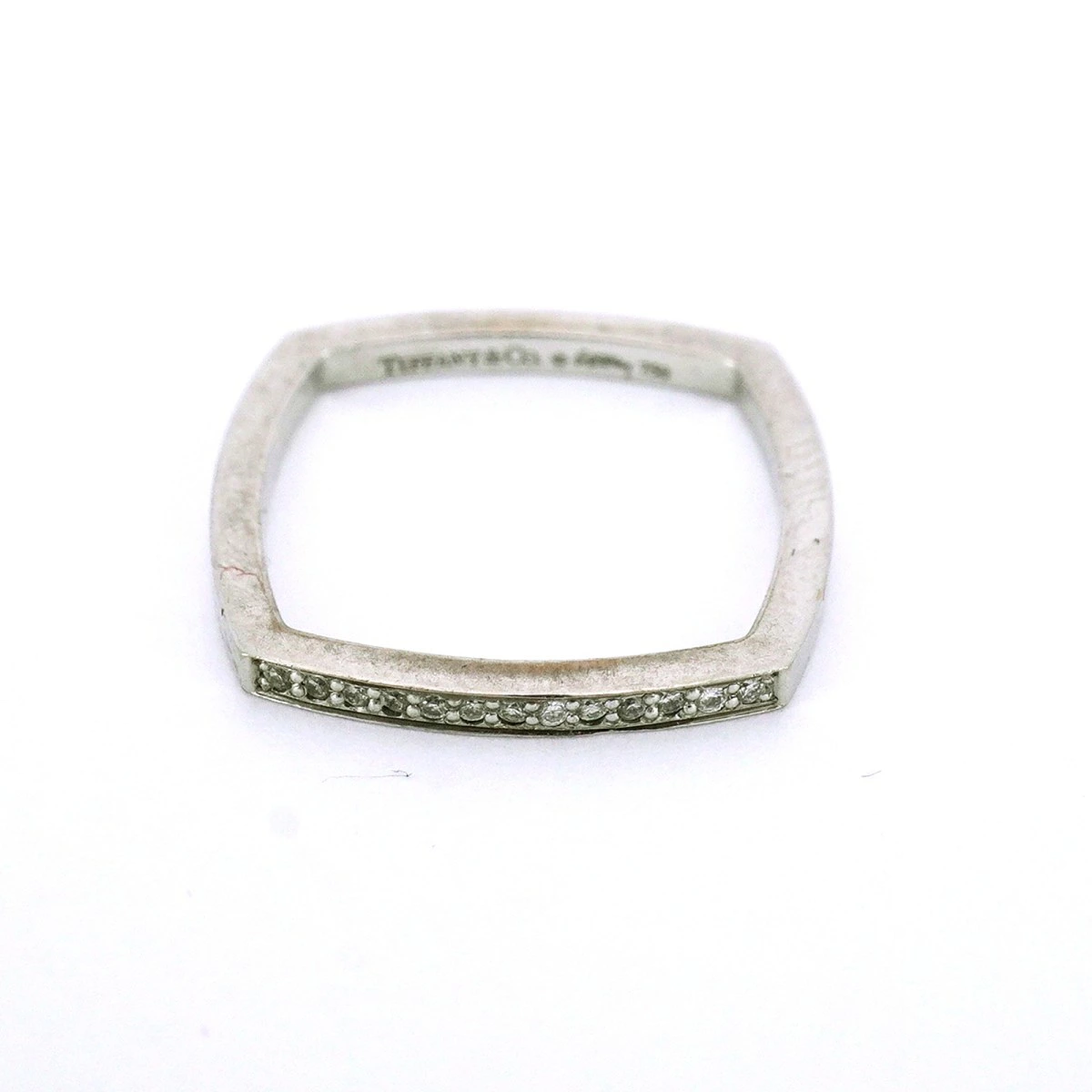 [5job0462] Tiffany Torque/Narrow/Frank Gehry Square Ring, 18K White Gold with Diamonds, Size 7.5 [Pre-owned] Women's