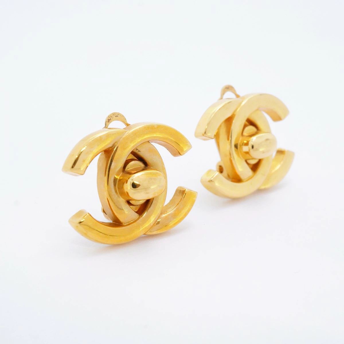 【5job0584】シャネル イヤリング ヴィンテージ ココマーク ターンロック GPメッキ ゴールド【中古】レディース