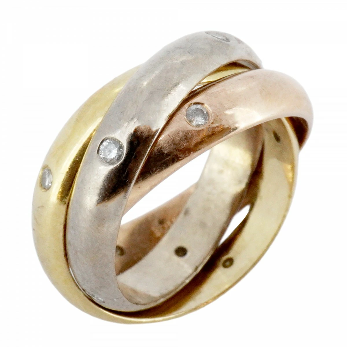 【5job0620】カルティエ リング トリニティ K18YG イエローゴールド K18WG ホワイトゴールド K18PG ピンクゴールド/ダイヤモンド #49【中古】レディース